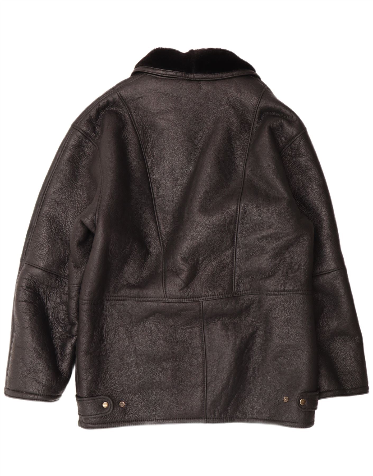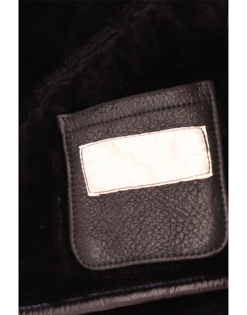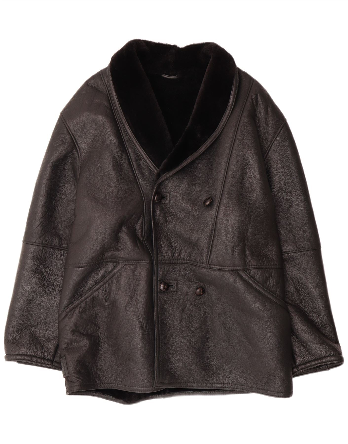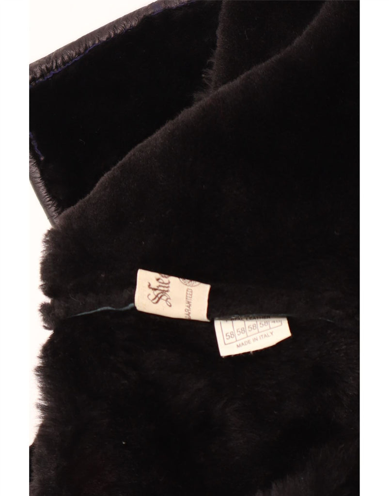 VINTAGE Chaqueta de piel de oveja de doble botonadura para hombre IT 58 4XL Piel de oveja negra