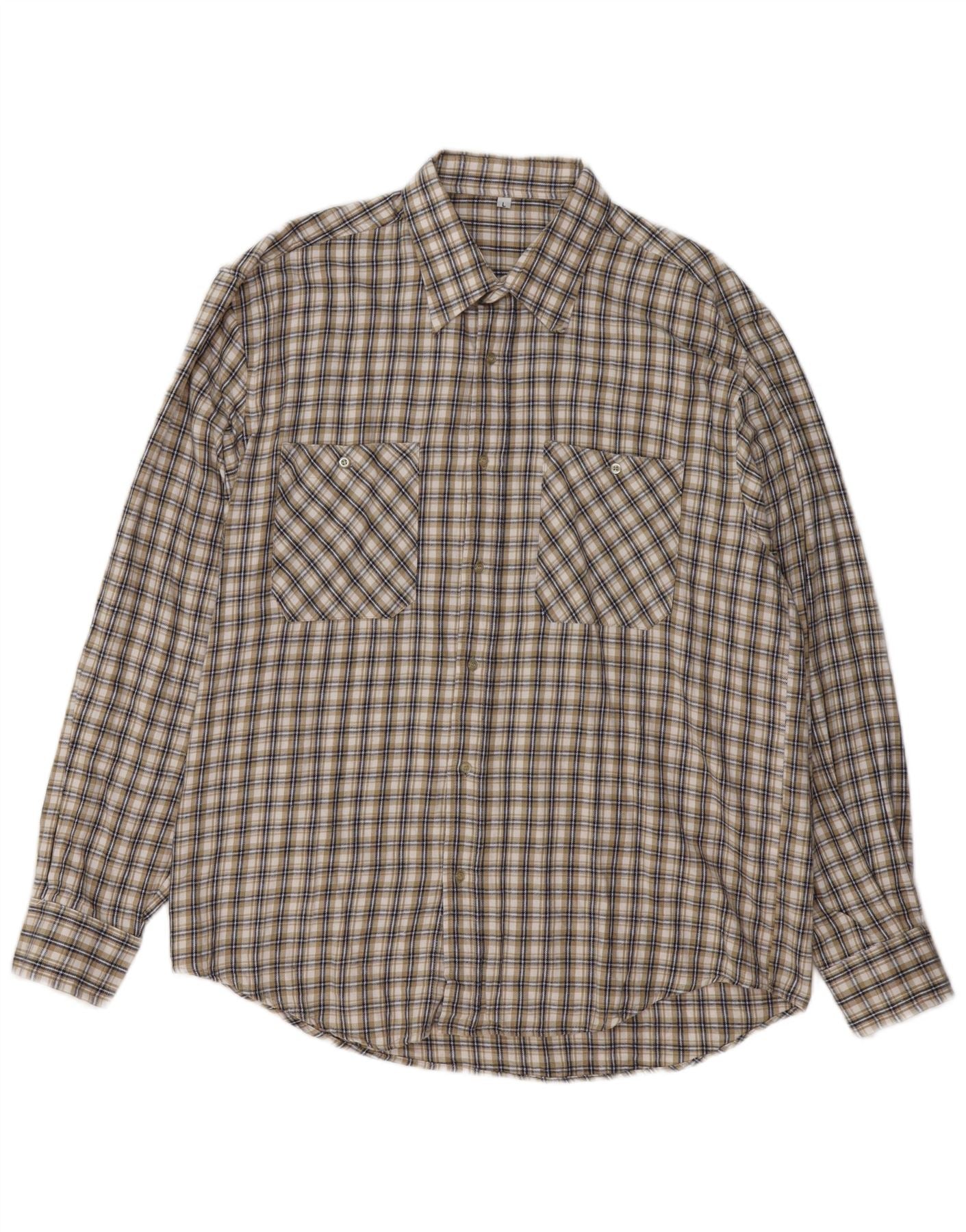 VINTAGE Camisa de franela para hombre Algodón a cuadros beige grande