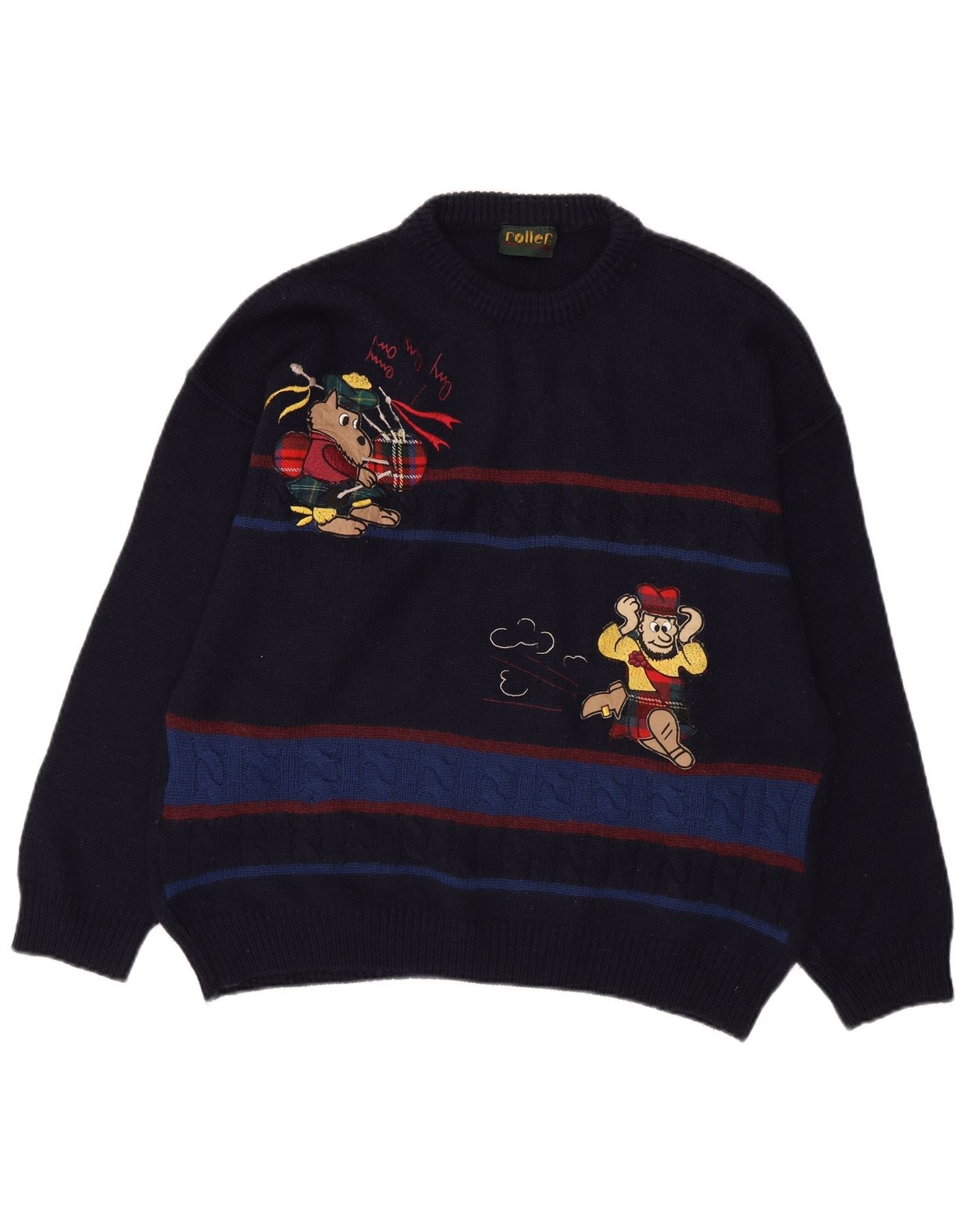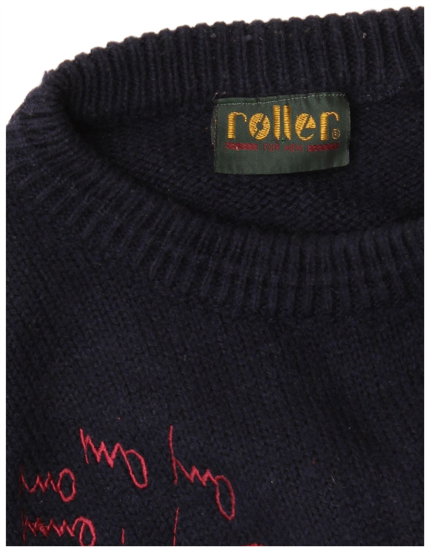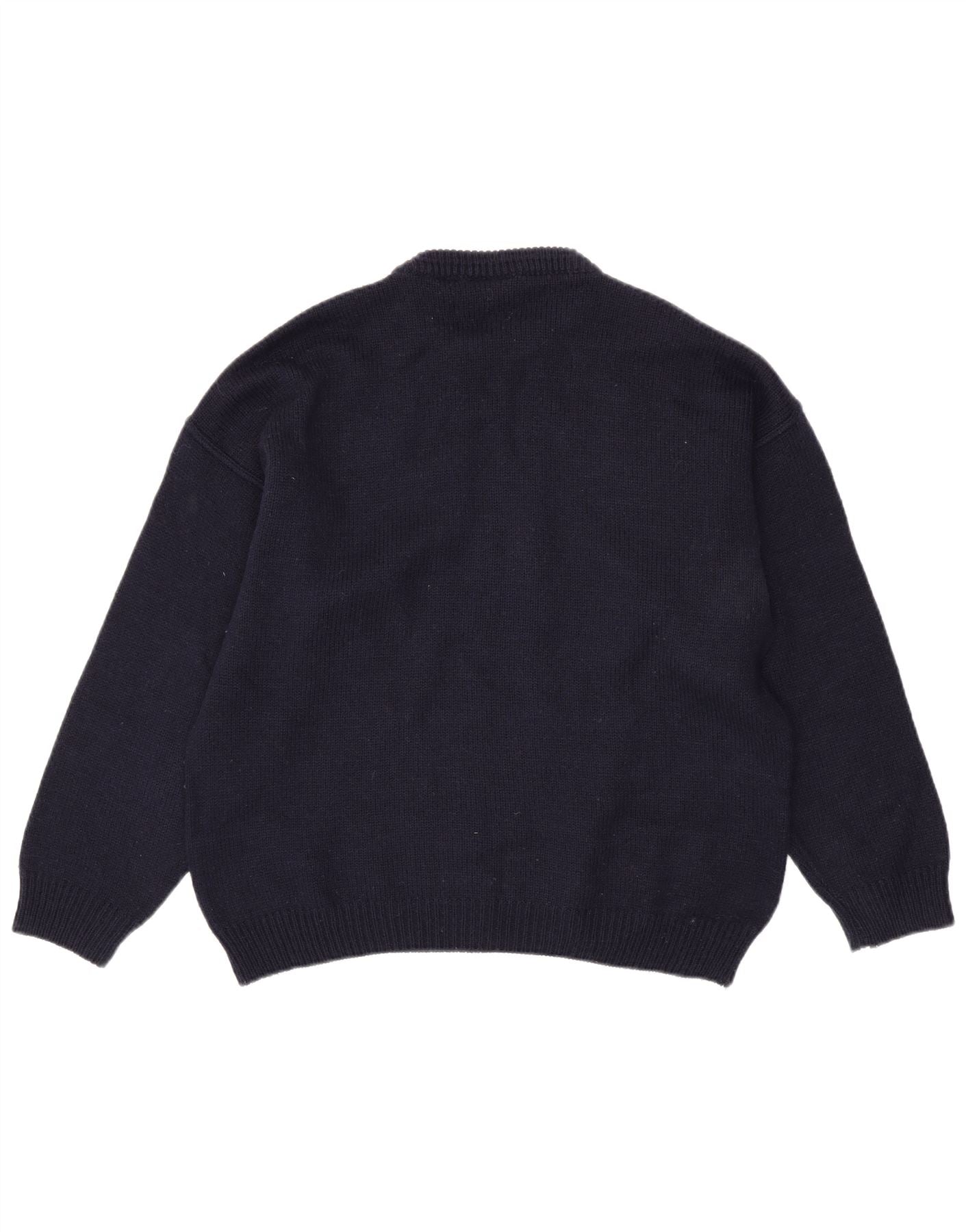 VINTAGE Hombres Gráfico Cuello Redondo Jersey Suéter Grande Azul Marino