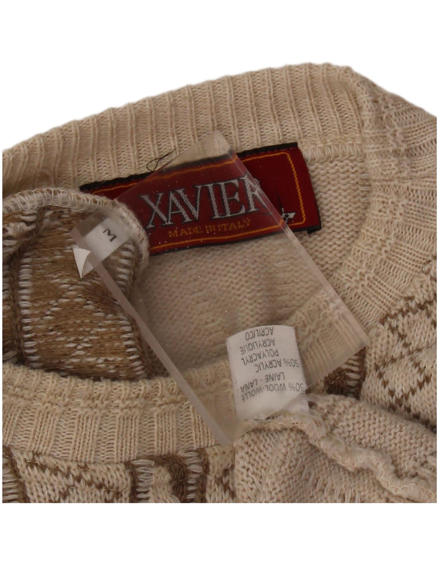 VINTAGE Jersey de cuello redondo gráfico para hombre Suéter de lana a rayas beige medio