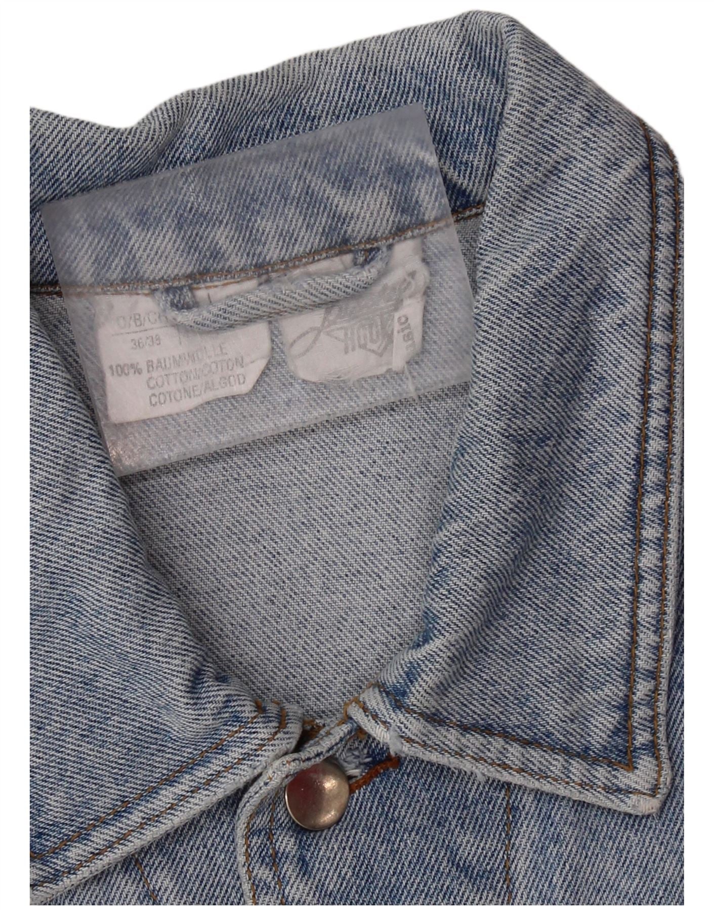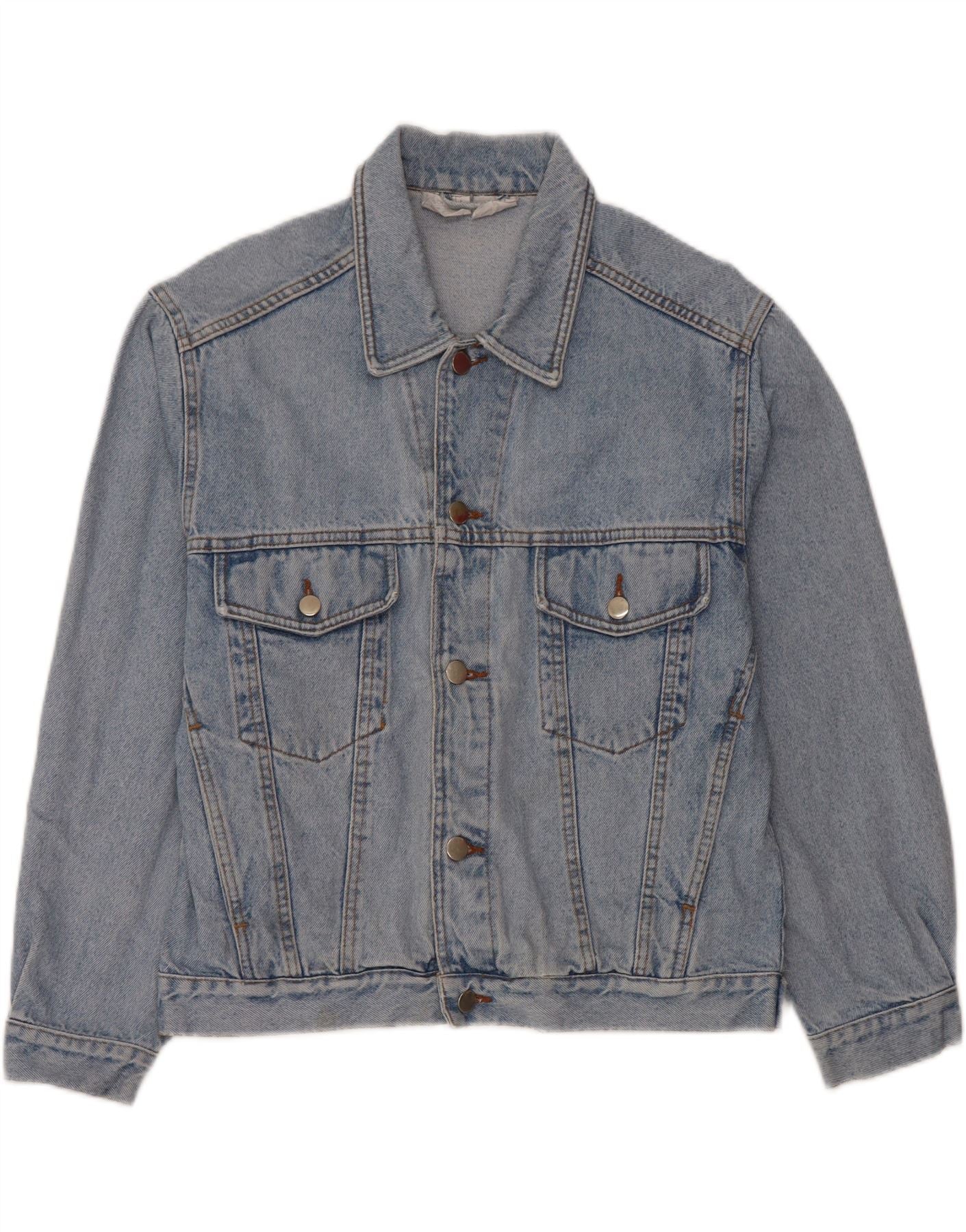 VINTAGE Chaqueta vaquera gráfica para hombre Reino Unido 36/38 Algodón azul pequeño