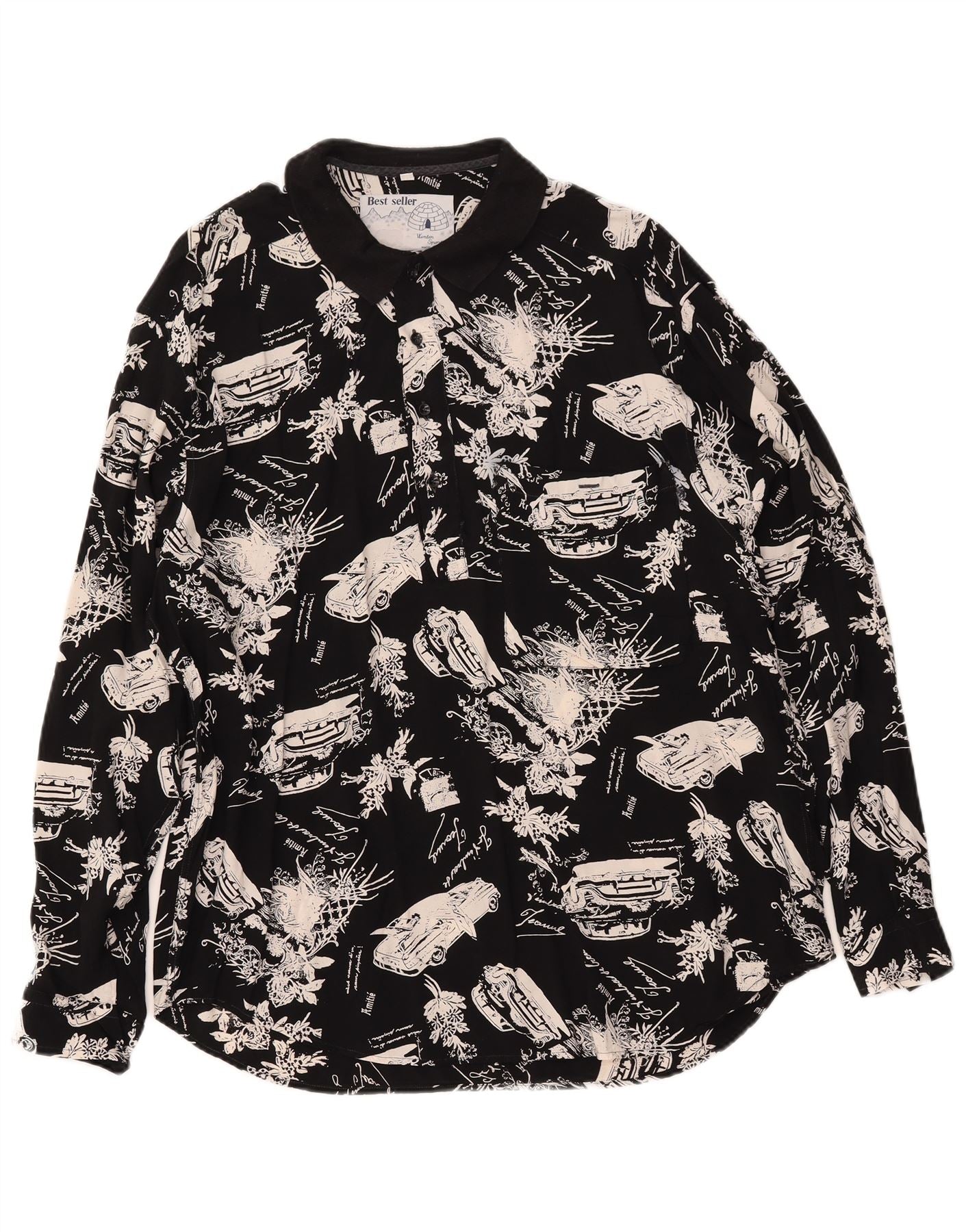 VINTAGE Hombres Gráfico Jersey Camisa Mediano Negro