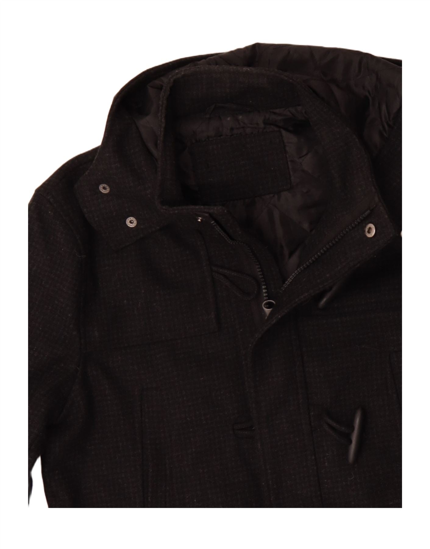 VINTAGE Abrigo de lona con capucha para hombre Reino Unido 38 Pata de gallo negra mediana