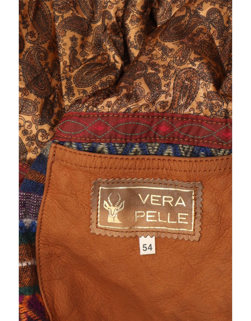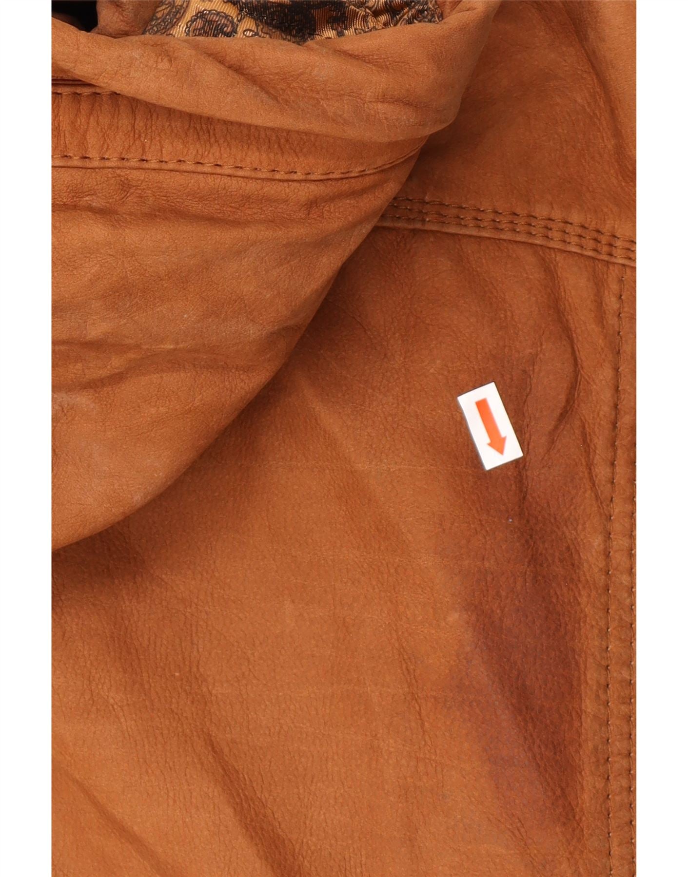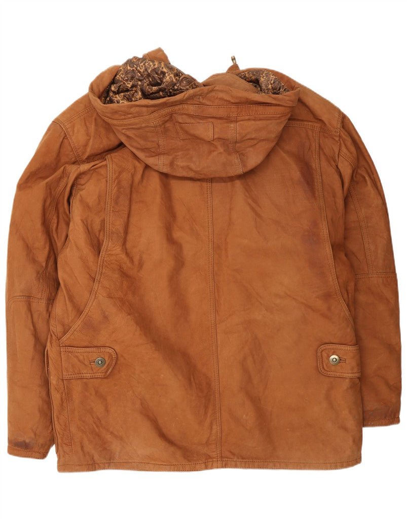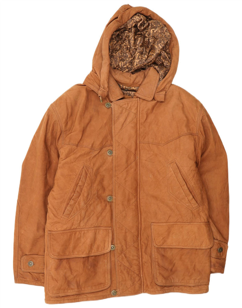 VINTAGE Chaqueta de cuero con capucha para hombre EU 54 2XL Cuero marrón