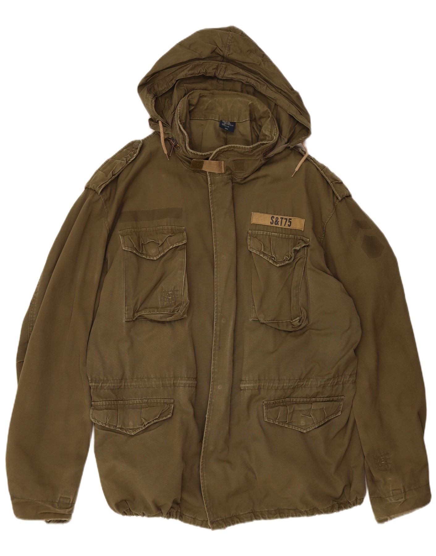 VINTAGE Chaqueta militar con capucha para hombre Reino Unido 44 2XL Algodón caqui
