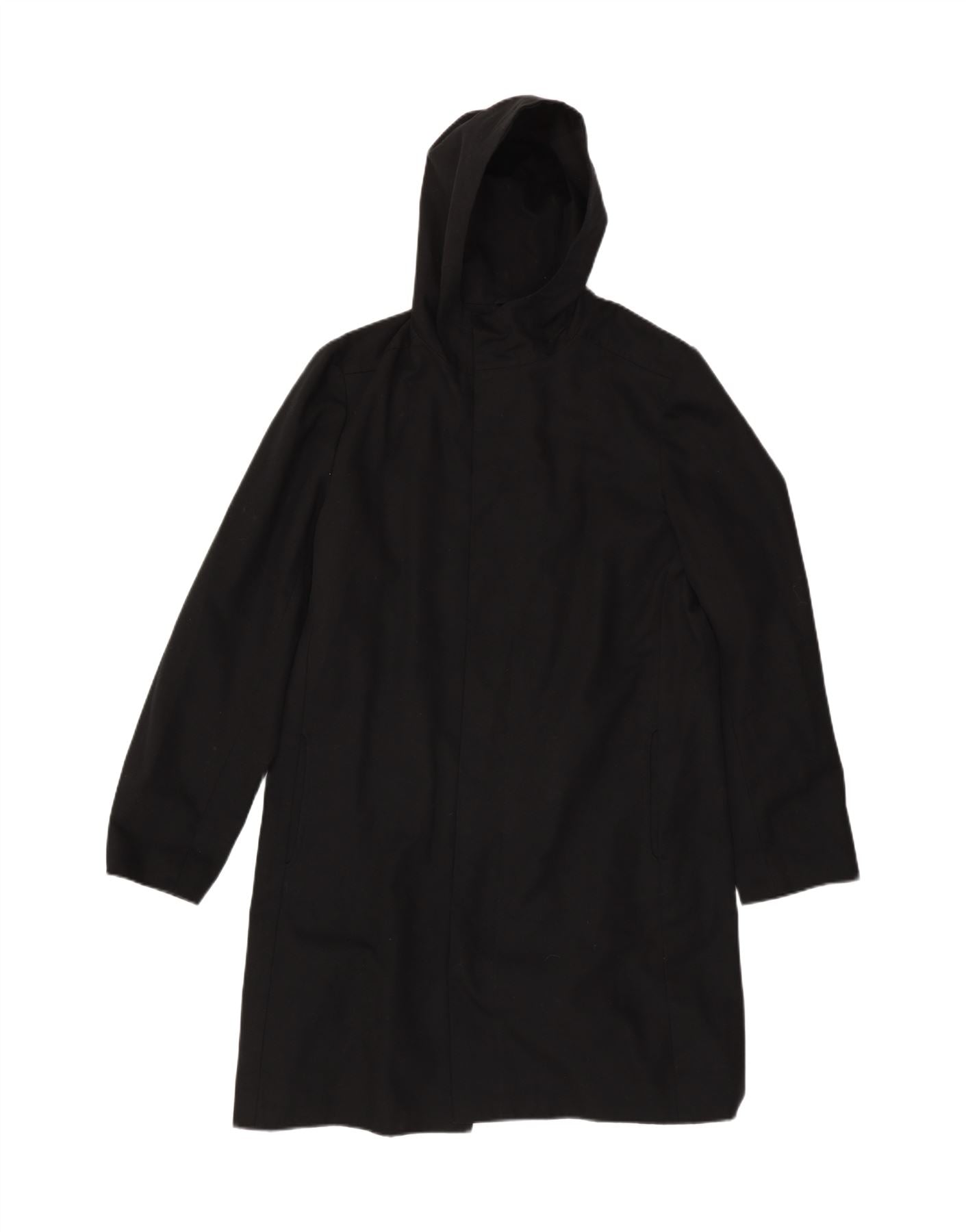 VINTAGE Mens Hooded Overcoat UK 40 Large Black Acetate