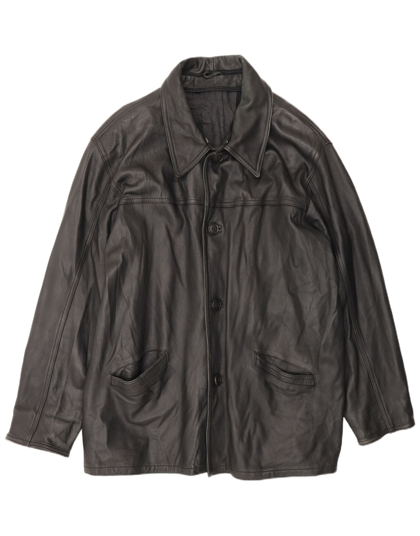 Vintage hombres cuero abrigo Reino Unido 42 XL negro