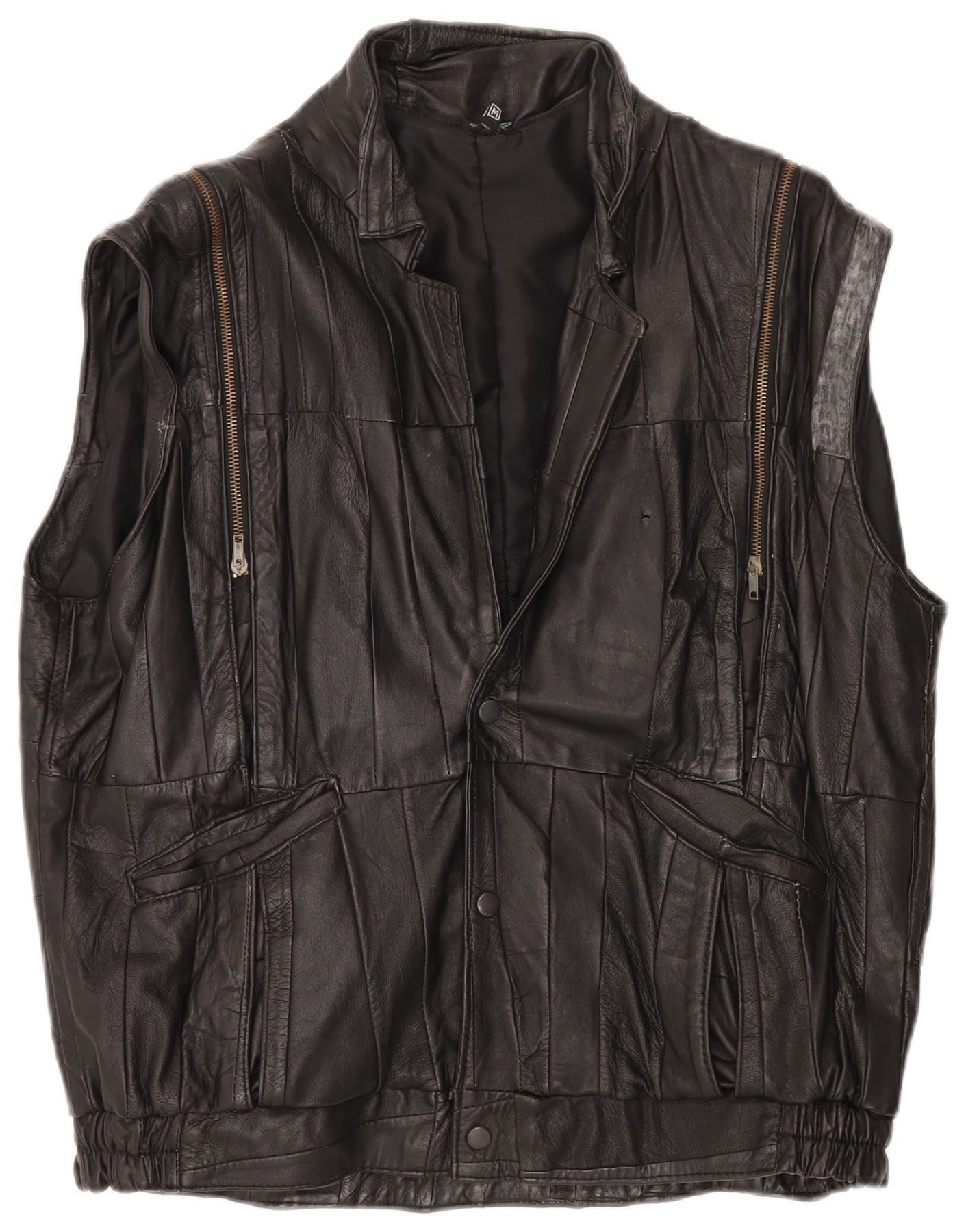 VINTAGE Chaleco de cuero para hombre Reino Unido 38 Patchwork negro medio