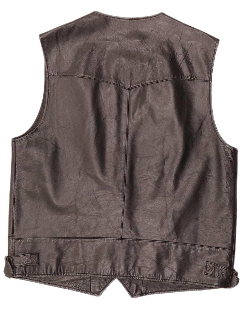 VINTAGE Chaleco de cuero para hombre Reino Unido 40 Cuero negro grande