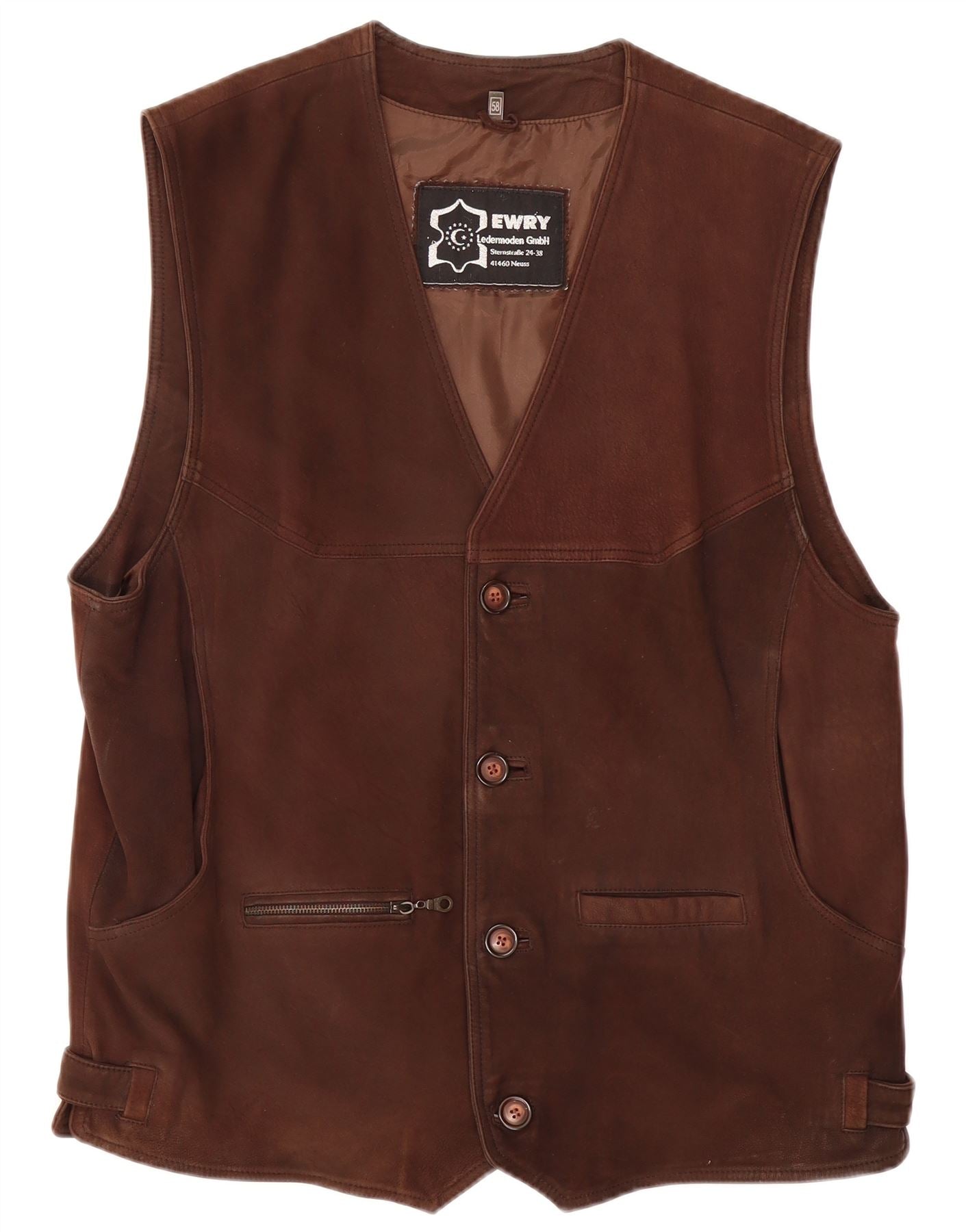 VINTAGE Chaleco de cuero para hombre Reino Unido 40 Cuero marrón grande