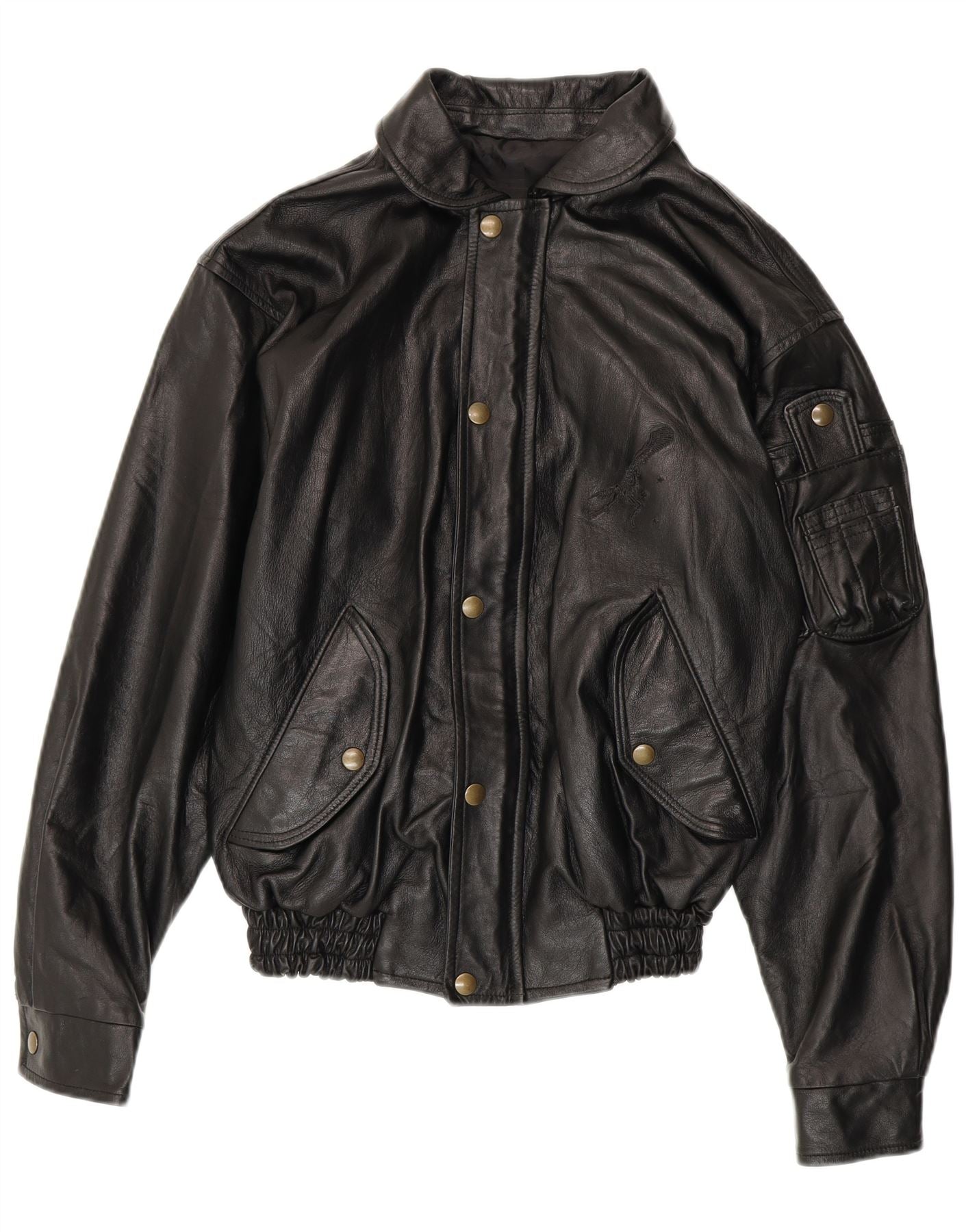 VINTAGE Chaqueta de cuero para hombre Reino Unido 36 Pequeño cuero negro