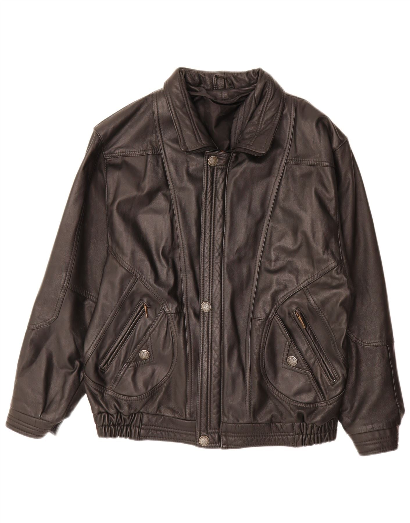 VINTAGE Chaqueta de cuero para hombre Reino Unido 38 Mediano Negro