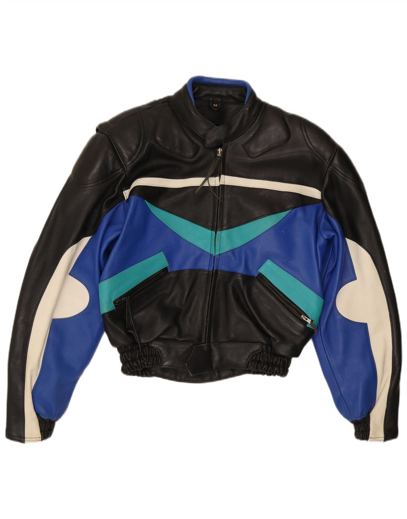 VINTAGE Chaqueta de cuero para hombre IT 52 XL Cuero color block negro