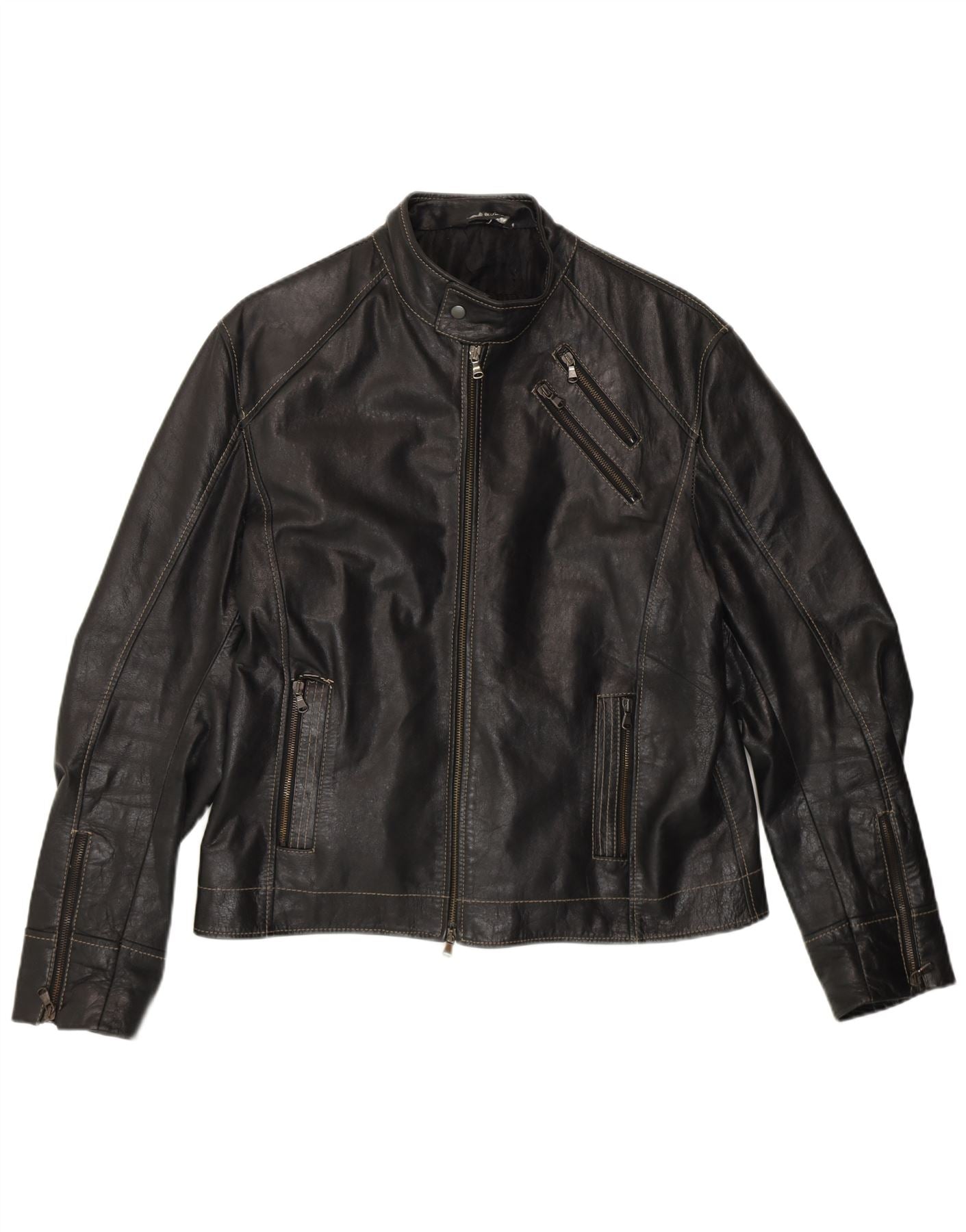 VINTAGE Chaqueta Racer de cuero para hombre Reino Unido 40 Cuero negro grande