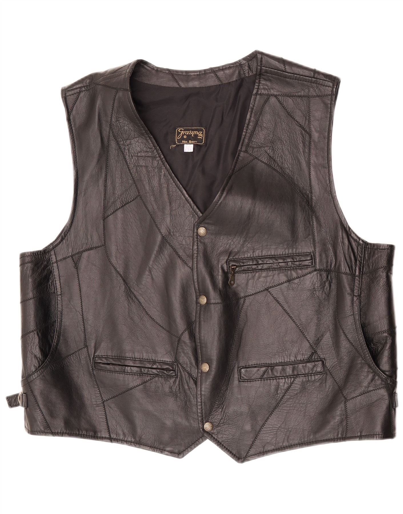 - Descripción de IA: Este chaleco para hombre de Vintage Industries está confeccionado en cuero negro y presenta un patrón de mosaico distintivo. Tiene un escote en pico clásico y un corte sin mangas. La parte delantera está asegurada con cierre de botón. Se incluyen prácticos bolsillos y correas ajustables en la parte posterior para un ajuste a medida. El corte regular garantiza comodidad y versatilidad. Este chaleco de estilo motero está completamente forrado y ofrece un aspecto resistente pero refinado.