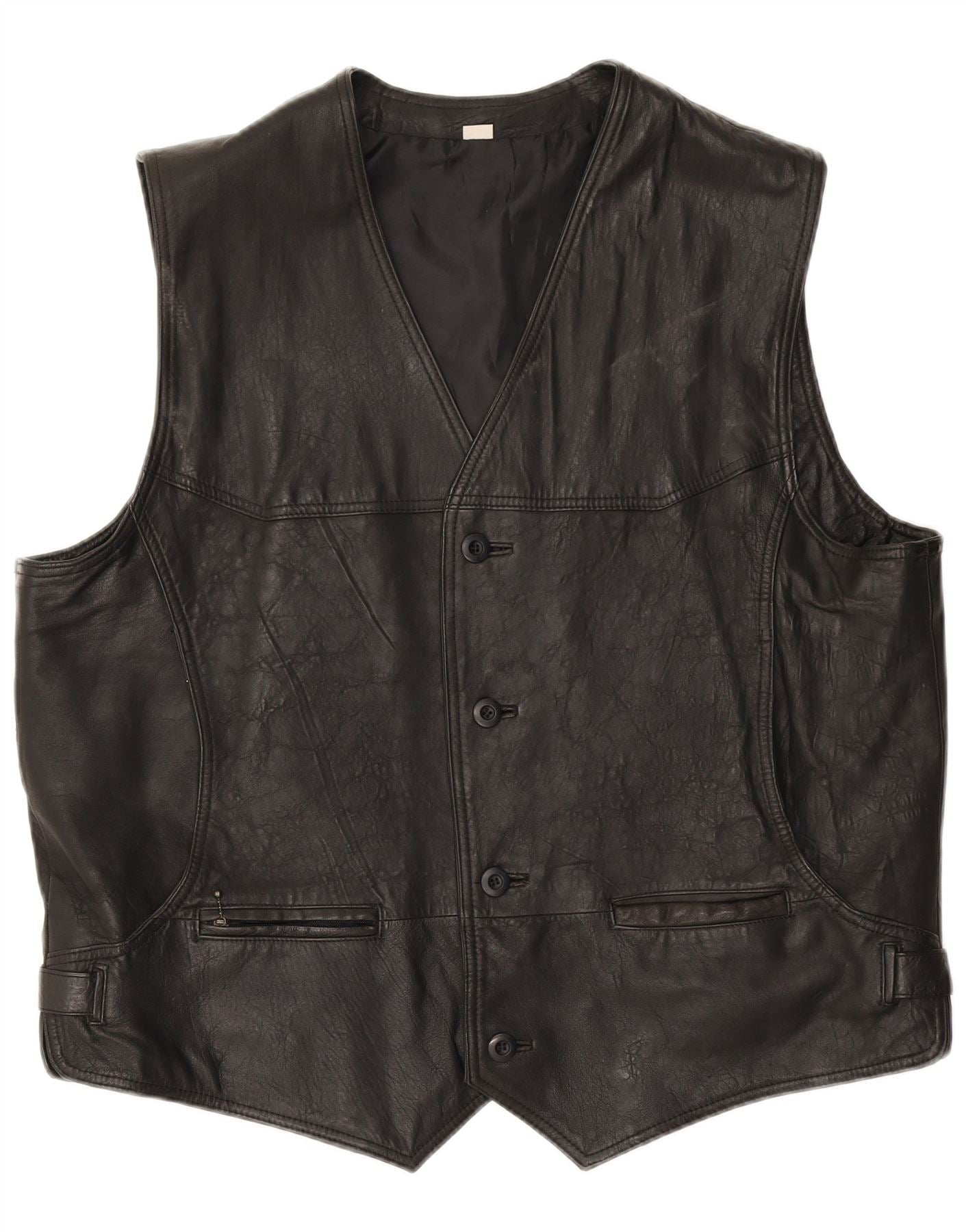 VINTAGE Chaleco de cuero para hombre 3XL Cuero negro