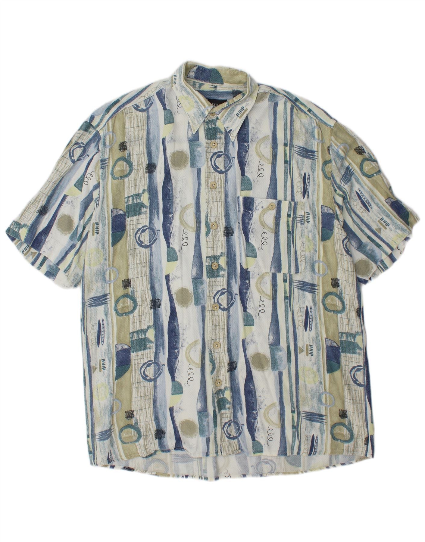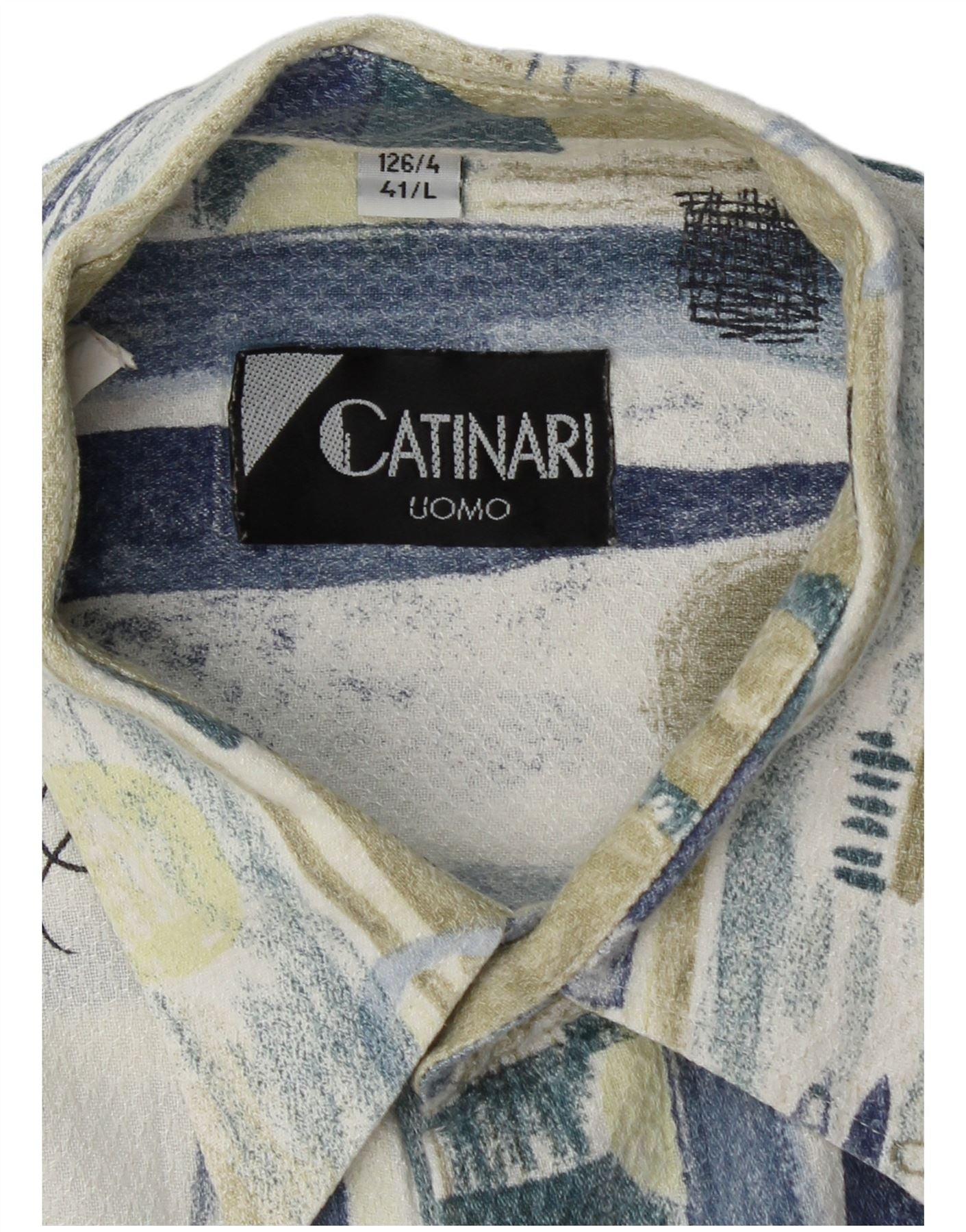 VINTAGE Hombres Longline Patrón Abstracto Camisa Tamaño 41 Azul Grande
