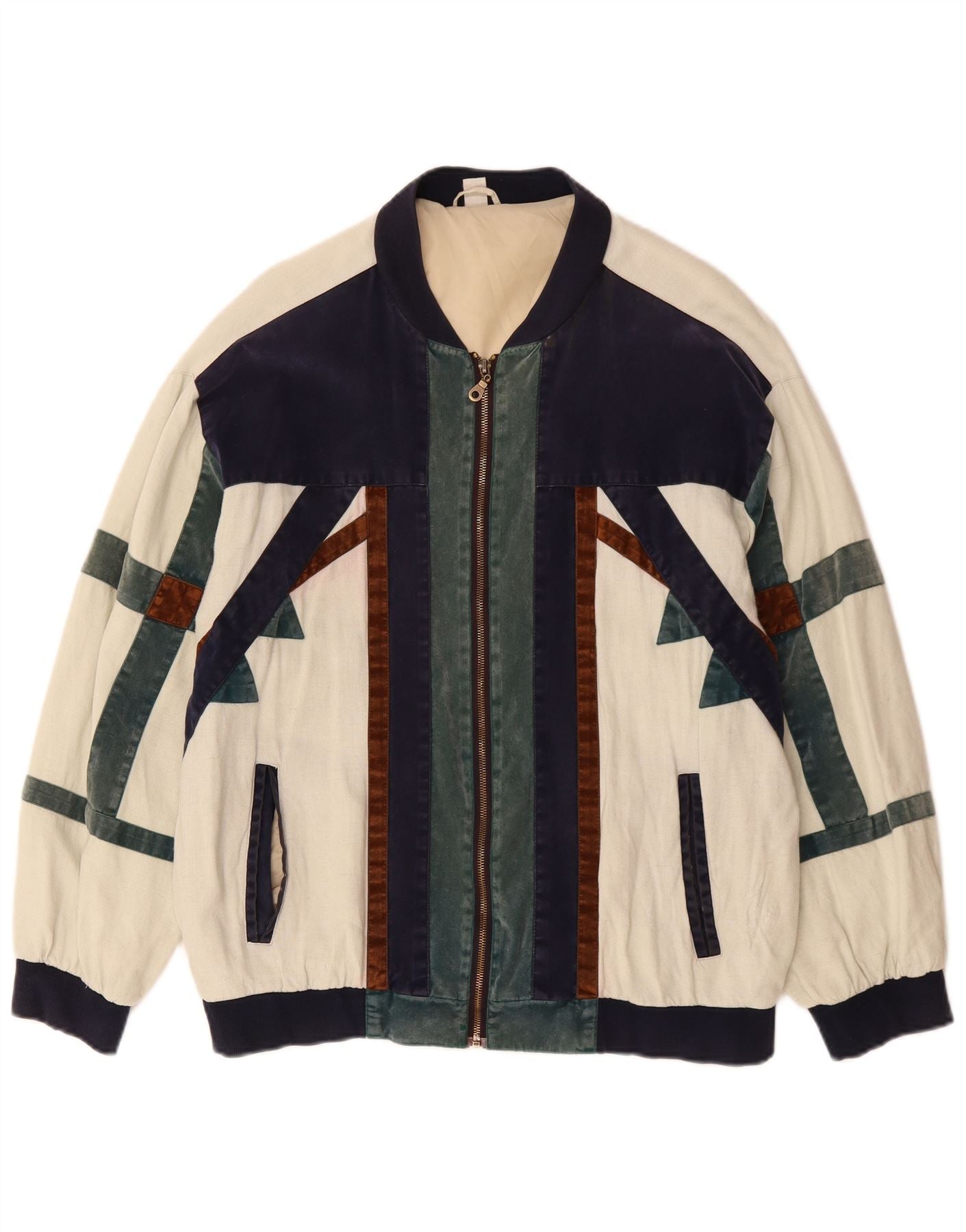 VINTAGE Chaqueta bomber holgada para hombre Reino Unido 36 Pequeño bloque de color blanco apagado