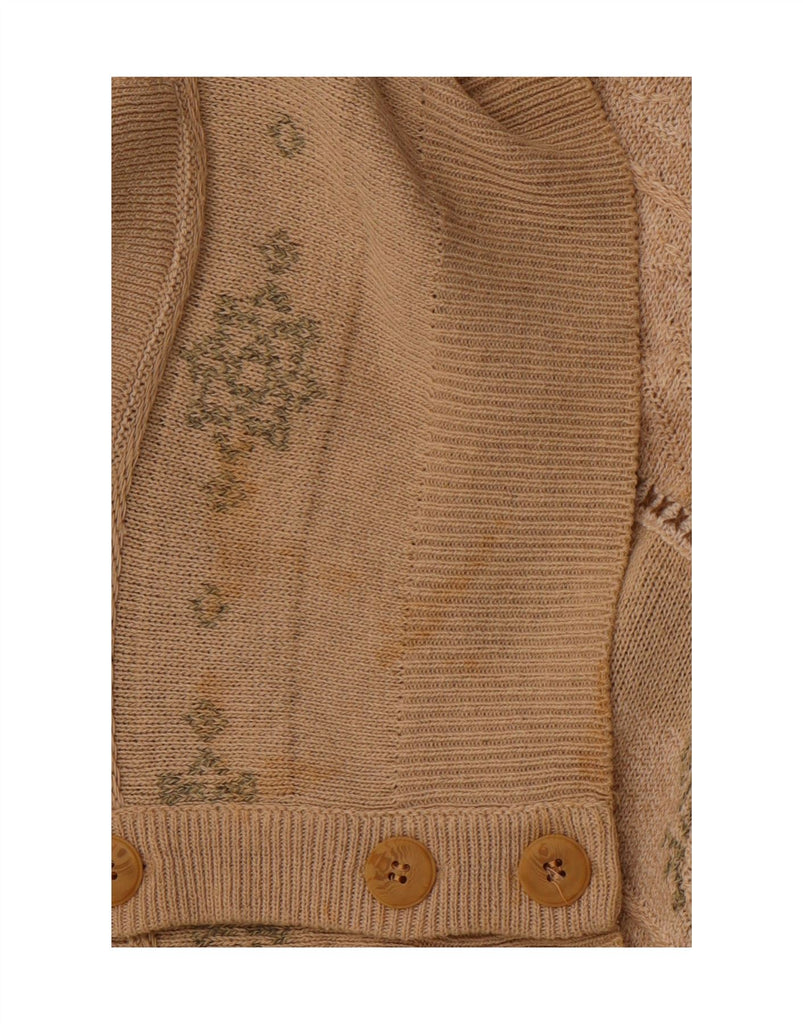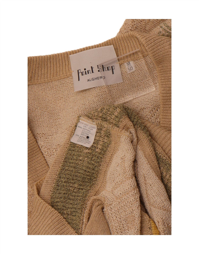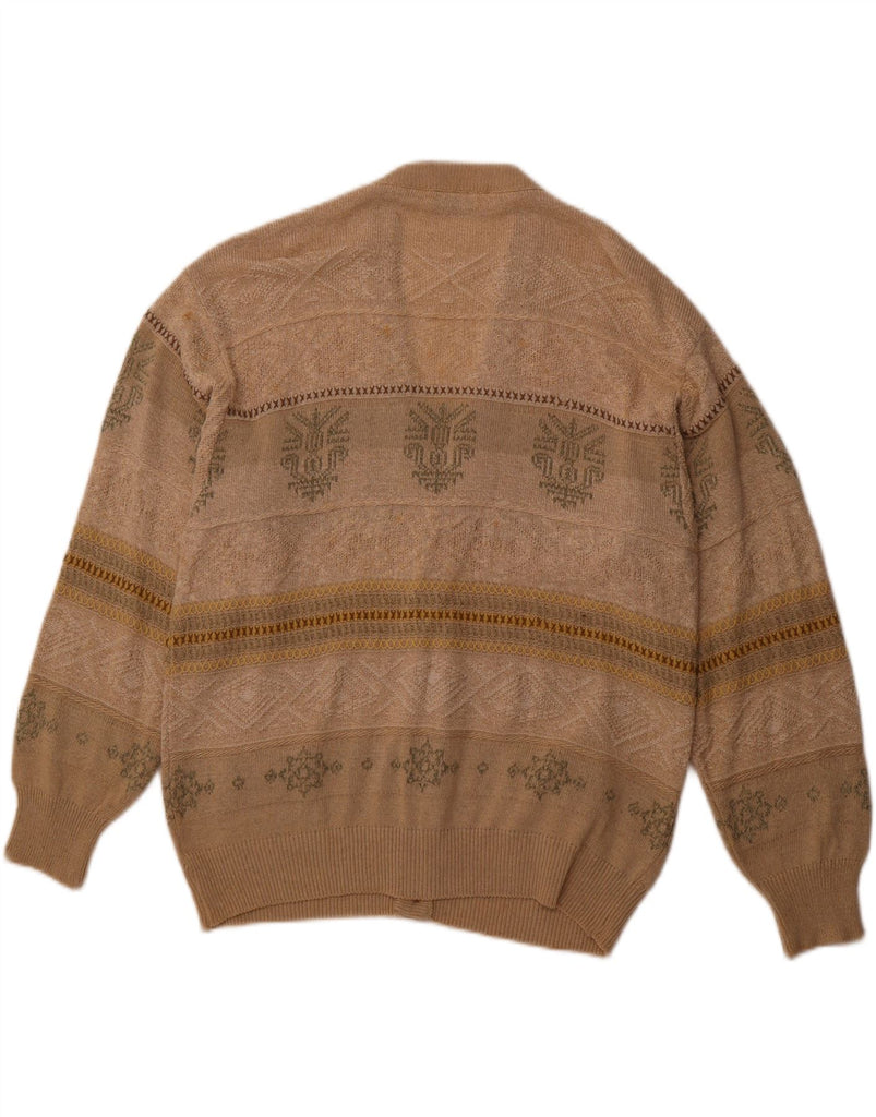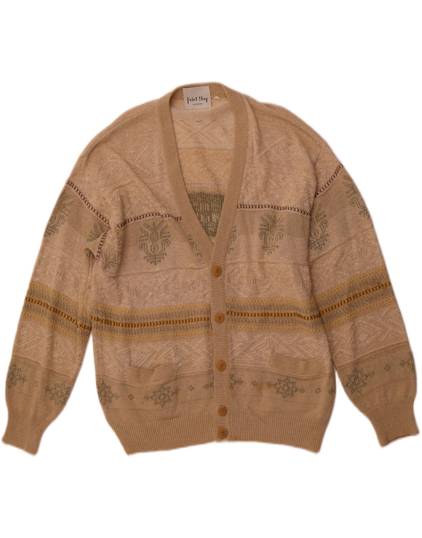 VINTAGE Hombres Loose Fit Cardigan Suéter IT 50 Medio Beige Fair Isle Flax