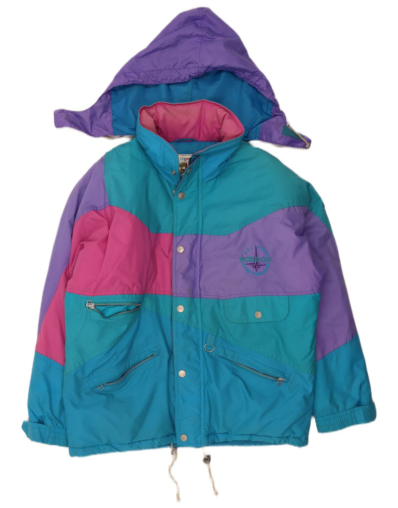 VINTAGE Chaqueta de esquí con capucha de ajuste holgado para hombre Reino Unido 38 Bloque de color azul medio