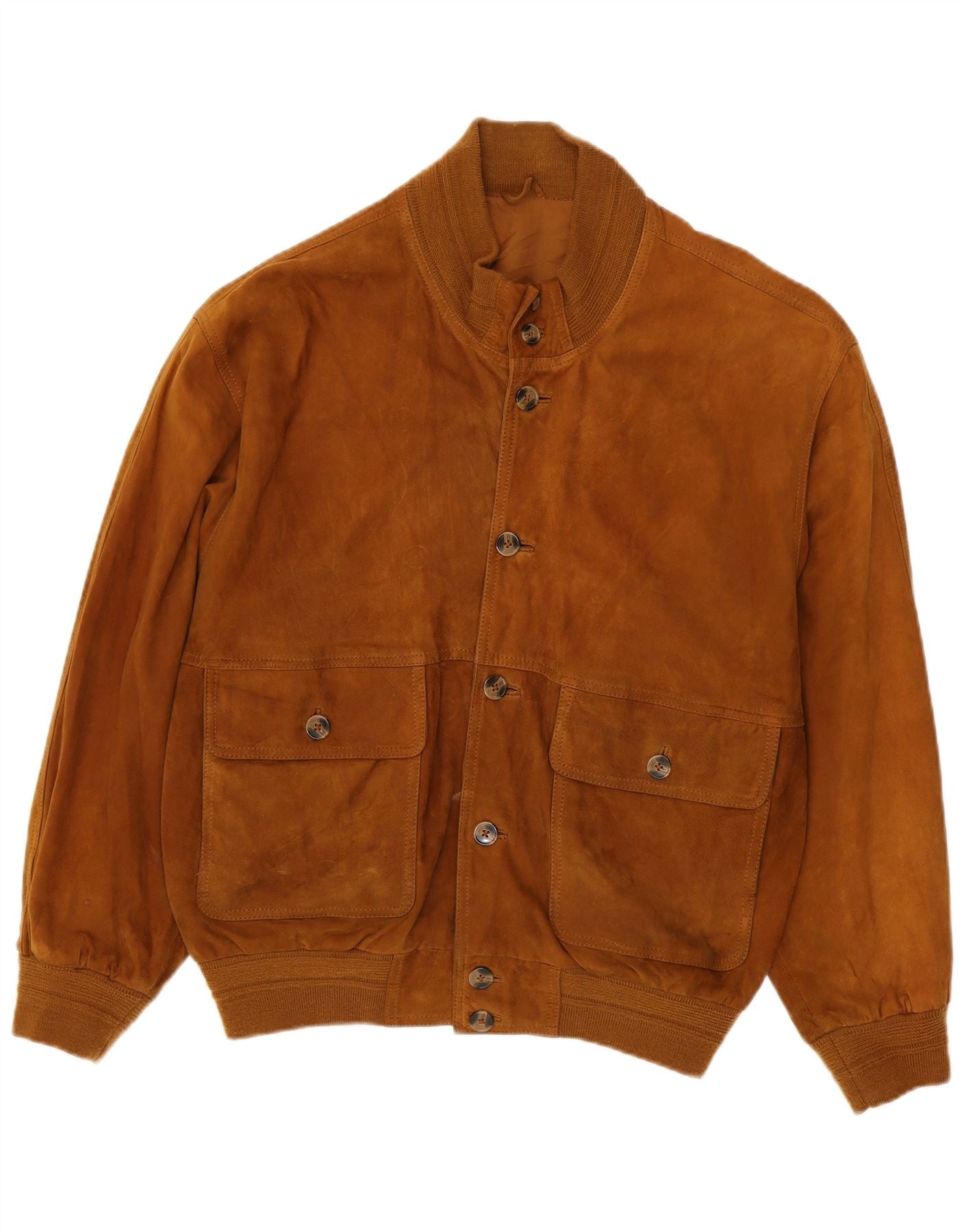 VINTAGE Chaqueta bomber de ante holgada para hombre IT 48 Cuero marrón medio