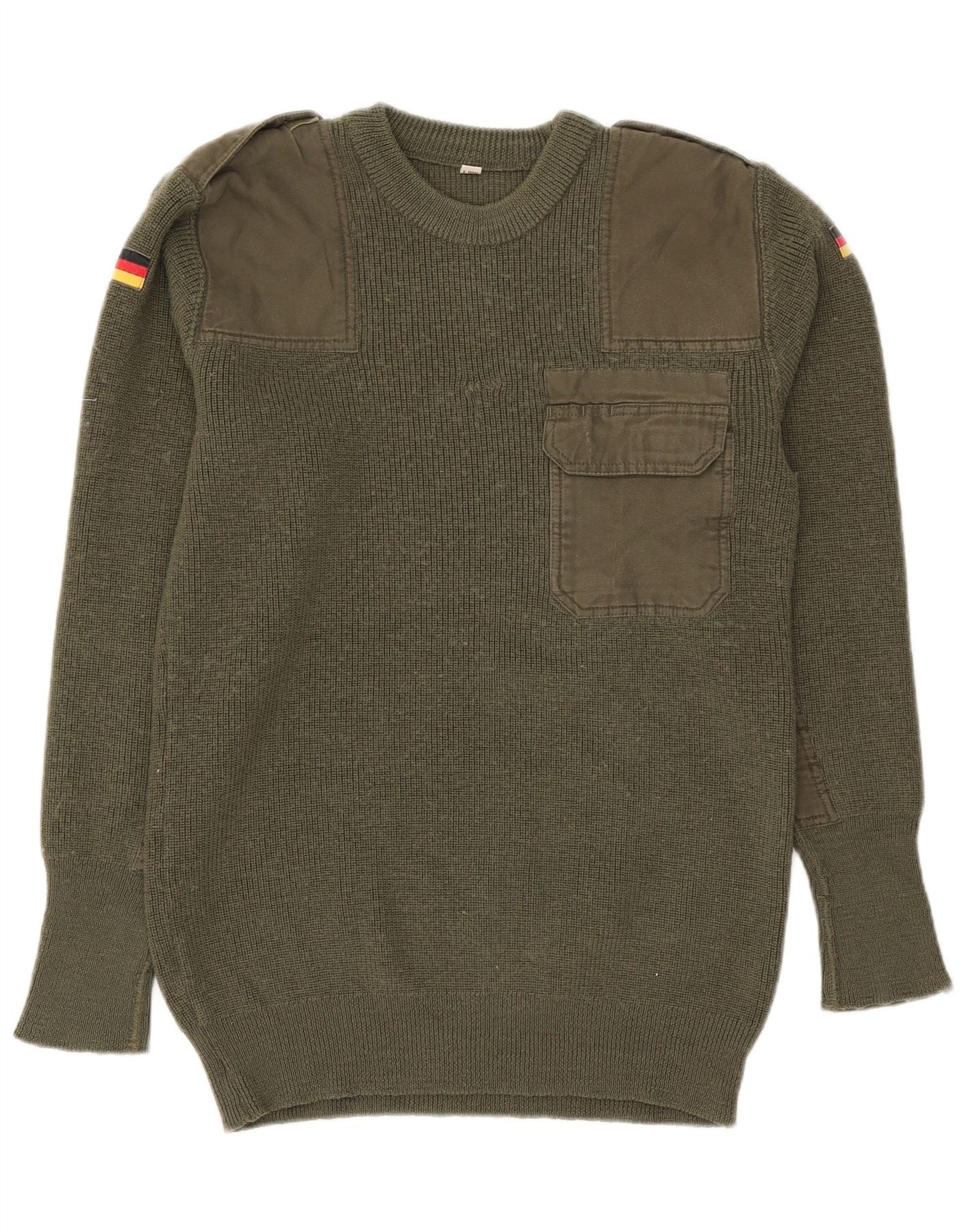 VINTAGE Mens Military Crew Neck Jumper Sweater IT 50 Medium Khaki Army