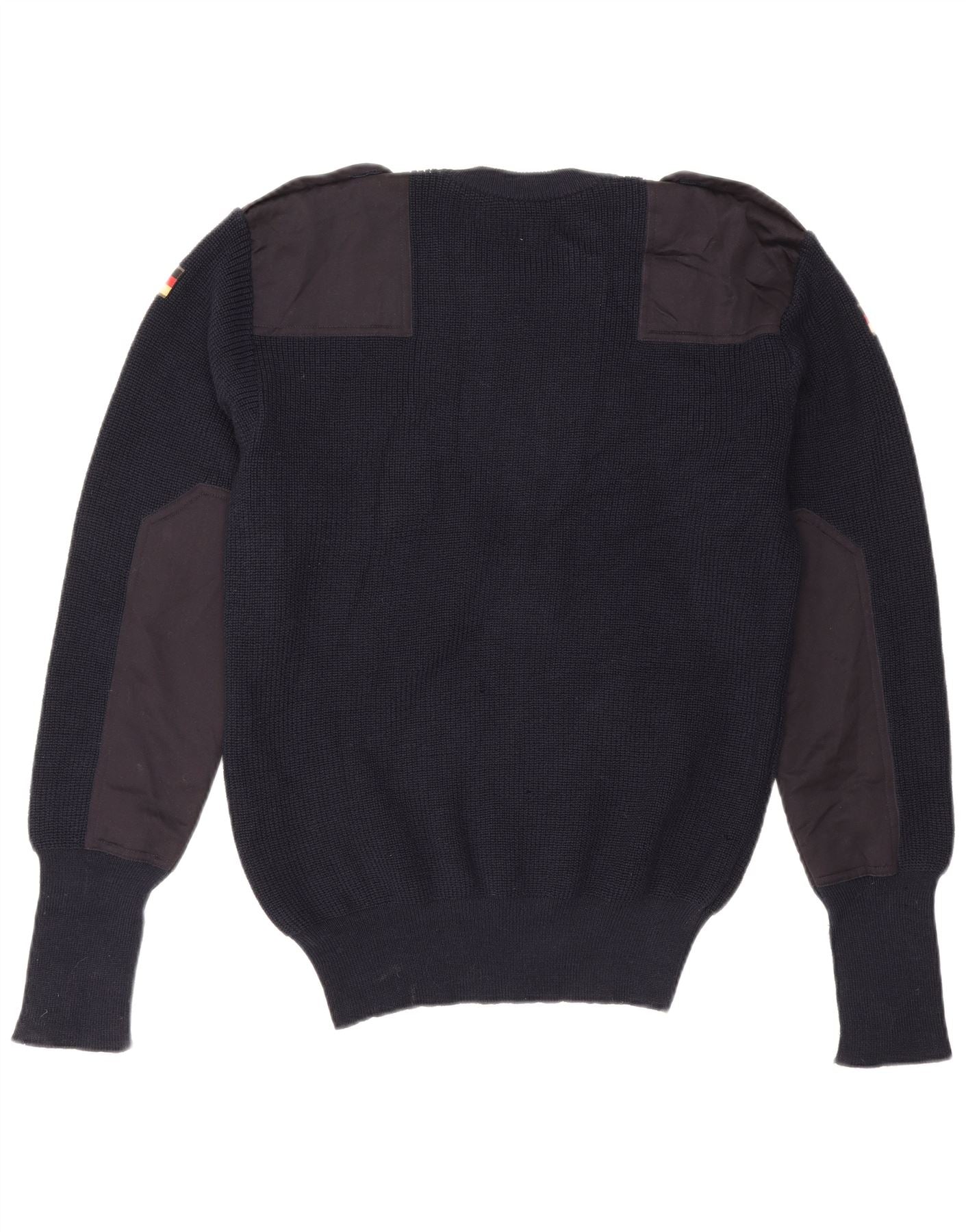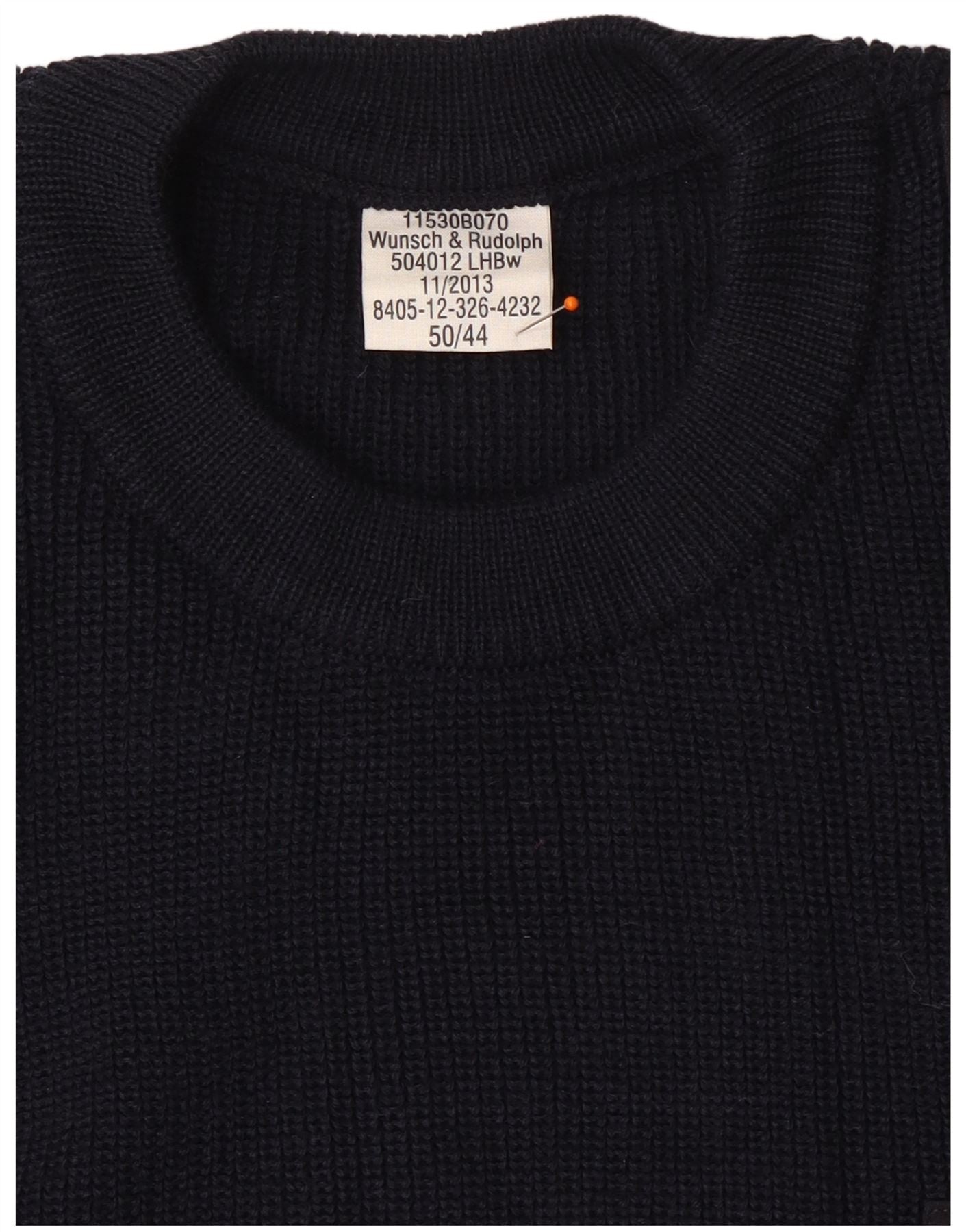VINTAGE Hombres Militar Cuello Redondo Jersey Suéter IT 50 Azul Marino Medio