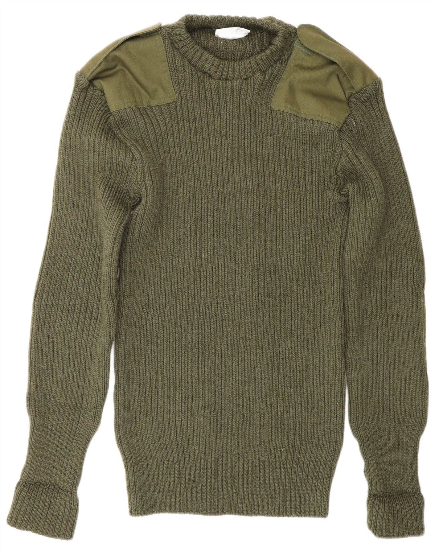 VINTAGE Hombres Militar Cuello Redondo Jersey Suéter Grande Caqui