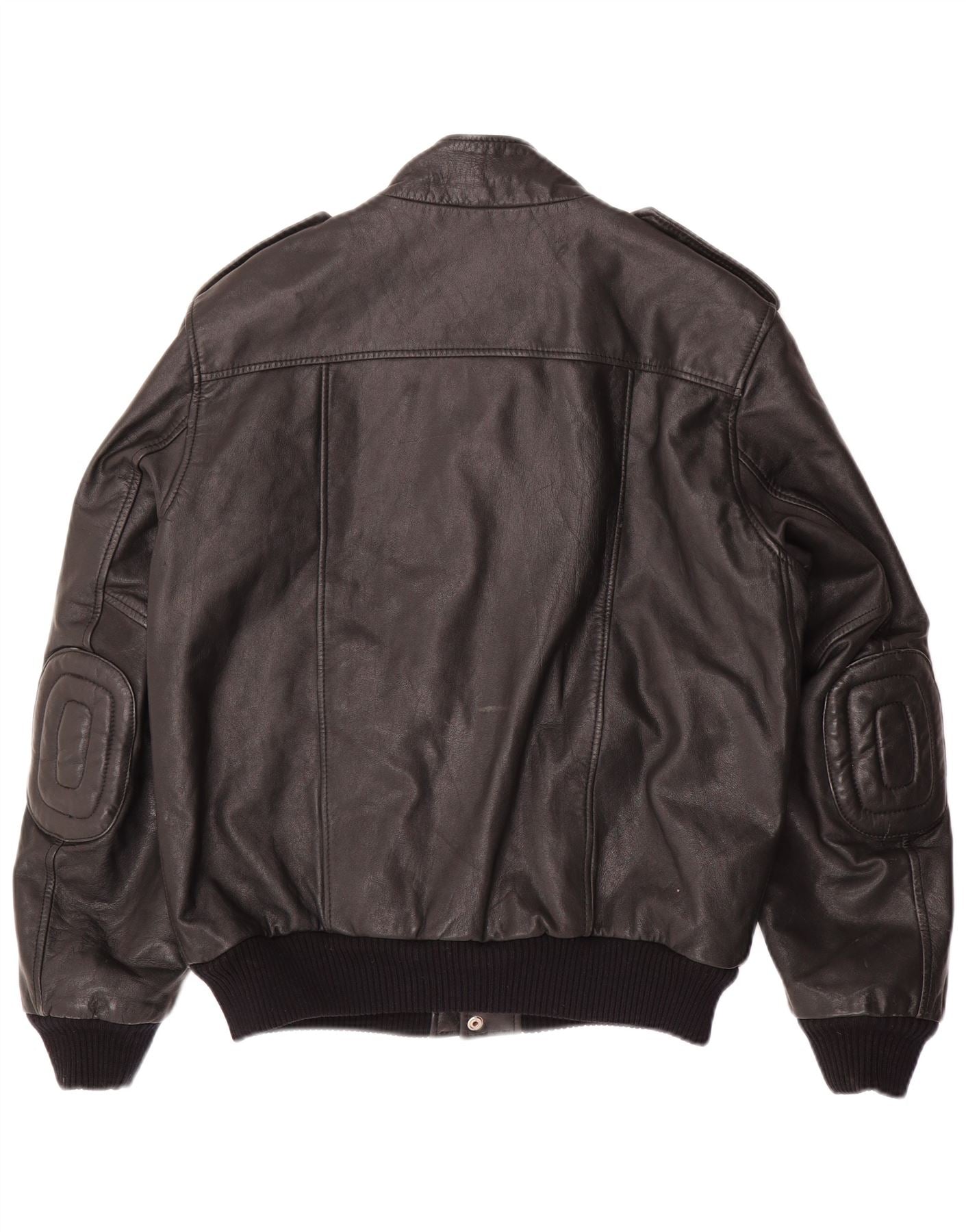 VINTAGE Chaqueta de cuero militar para hombre IT 54 2XL Cuero negro