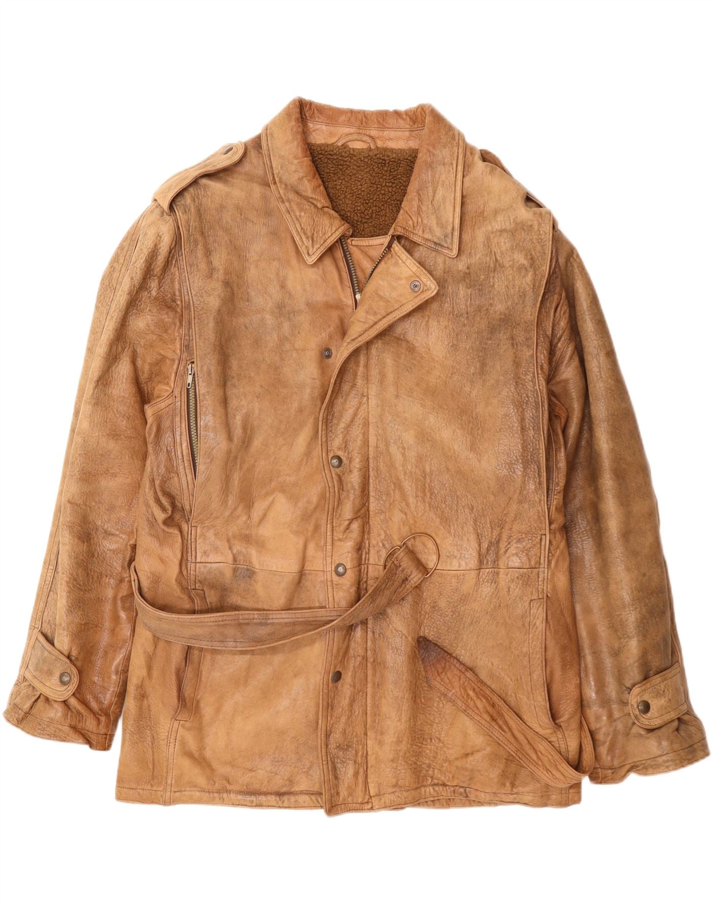 VINTAGE Chaqueta de cuero militar para hombre Reino Unido 42 XL Beige