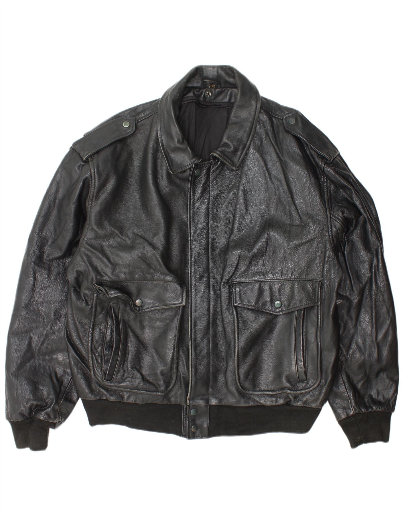 Vintage hombres chaqueta de cuero militar Reino Unido 42 XL cuero negro