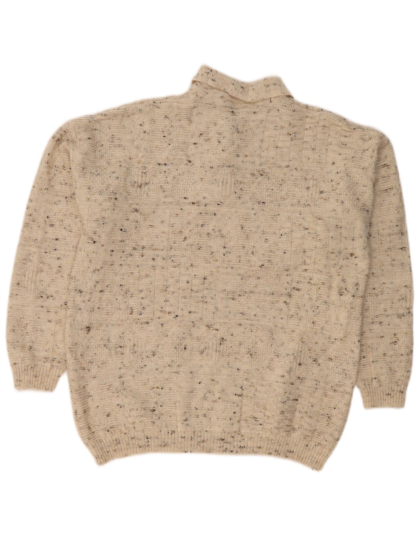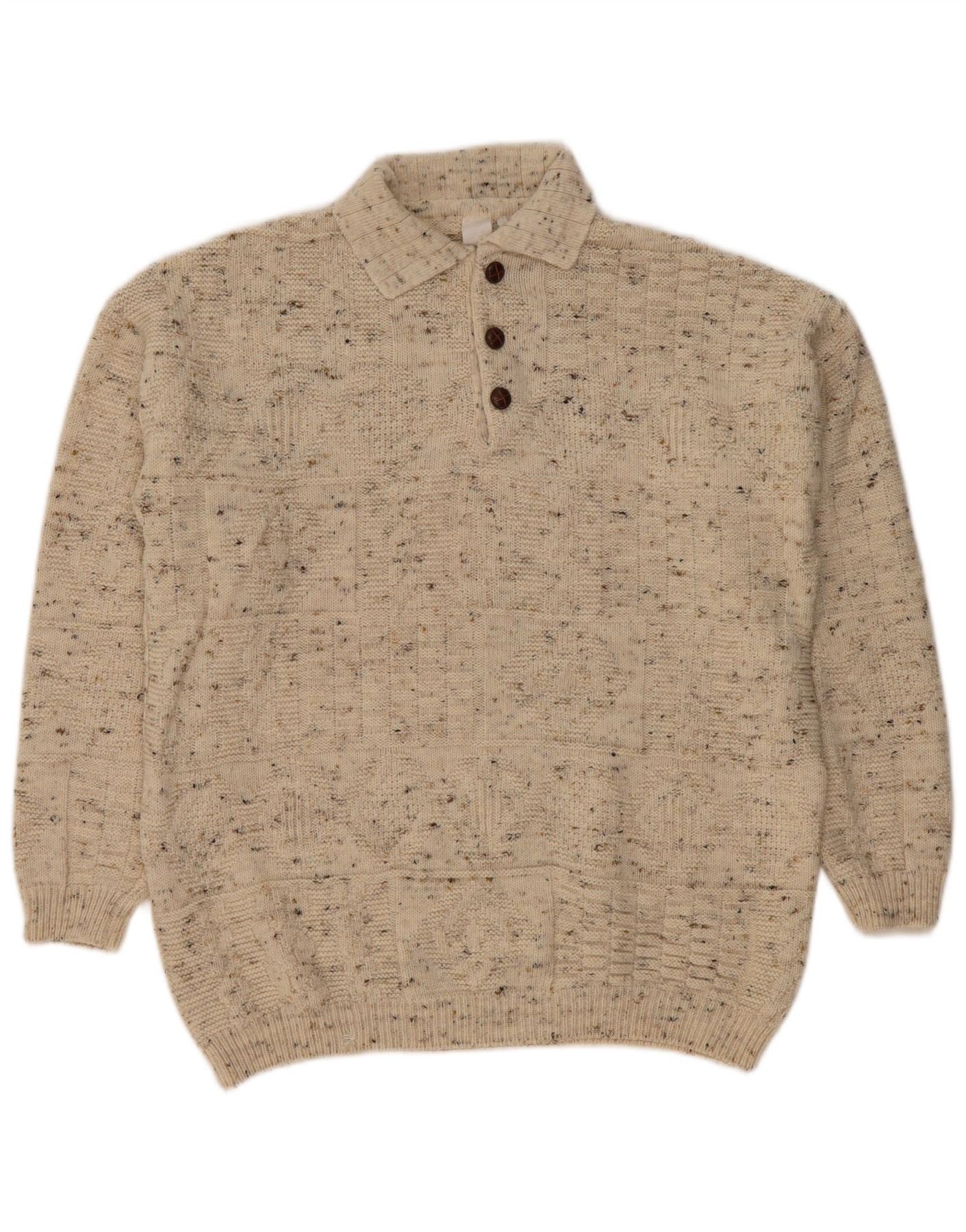 VINTAGE Hombres Polo Cuello Jersey Suéter Grande Beige Flecked