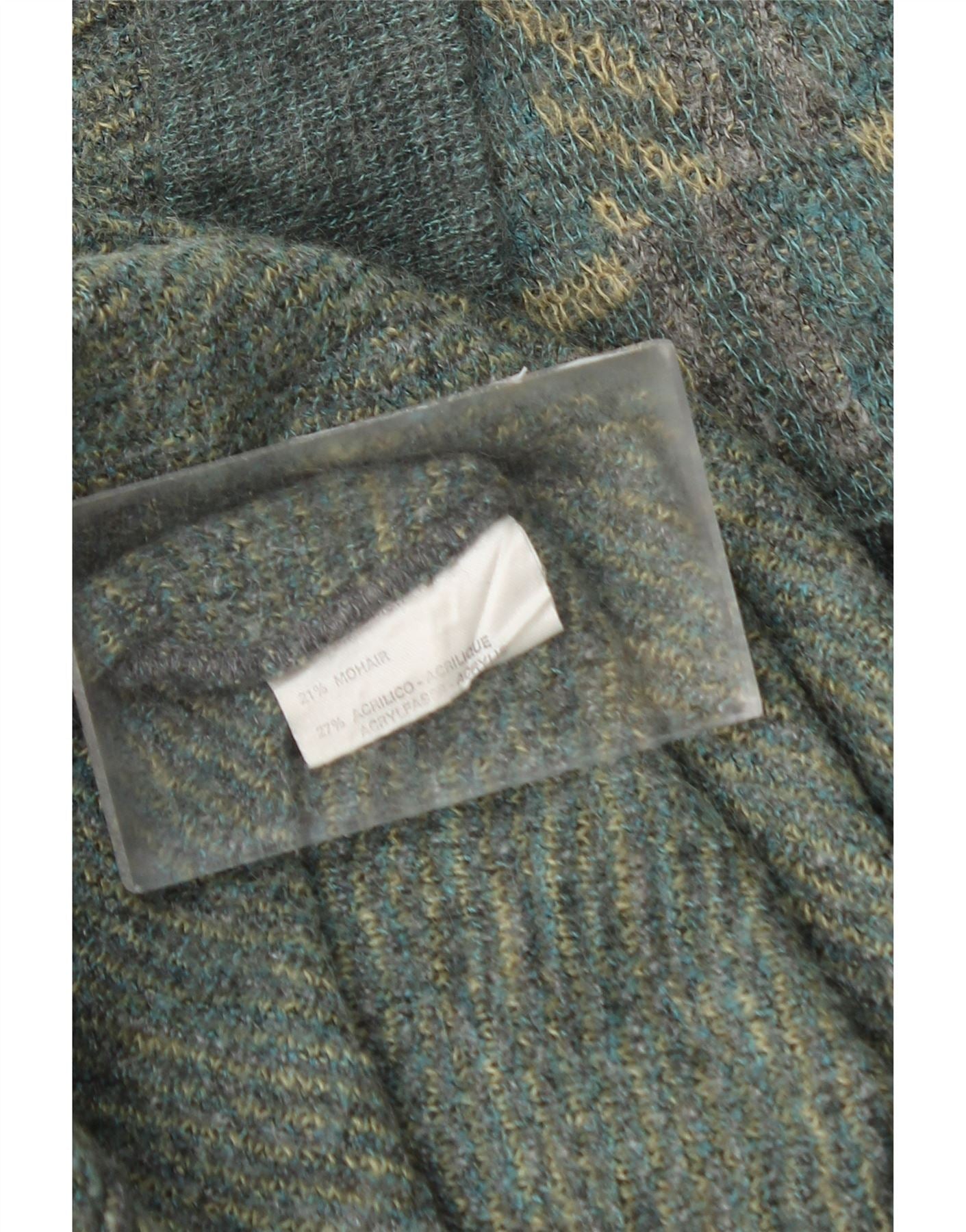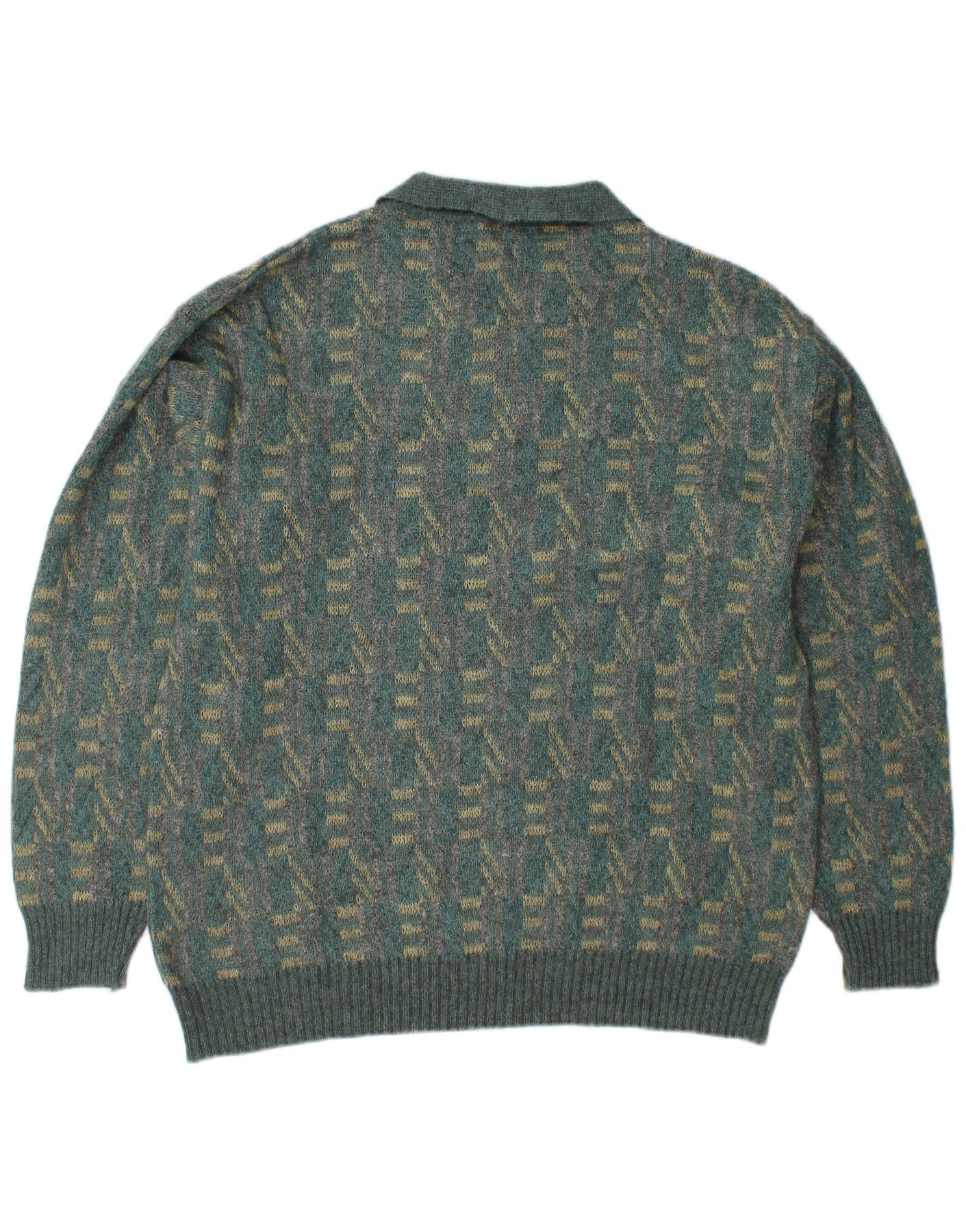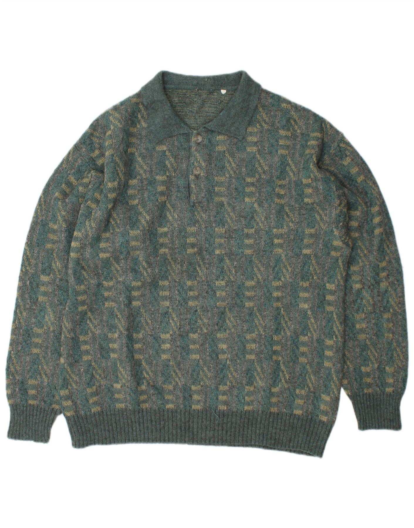 VINTAGE Hombres Polo Cuello Jersey Suéter Grande Verde Rayas Mohair