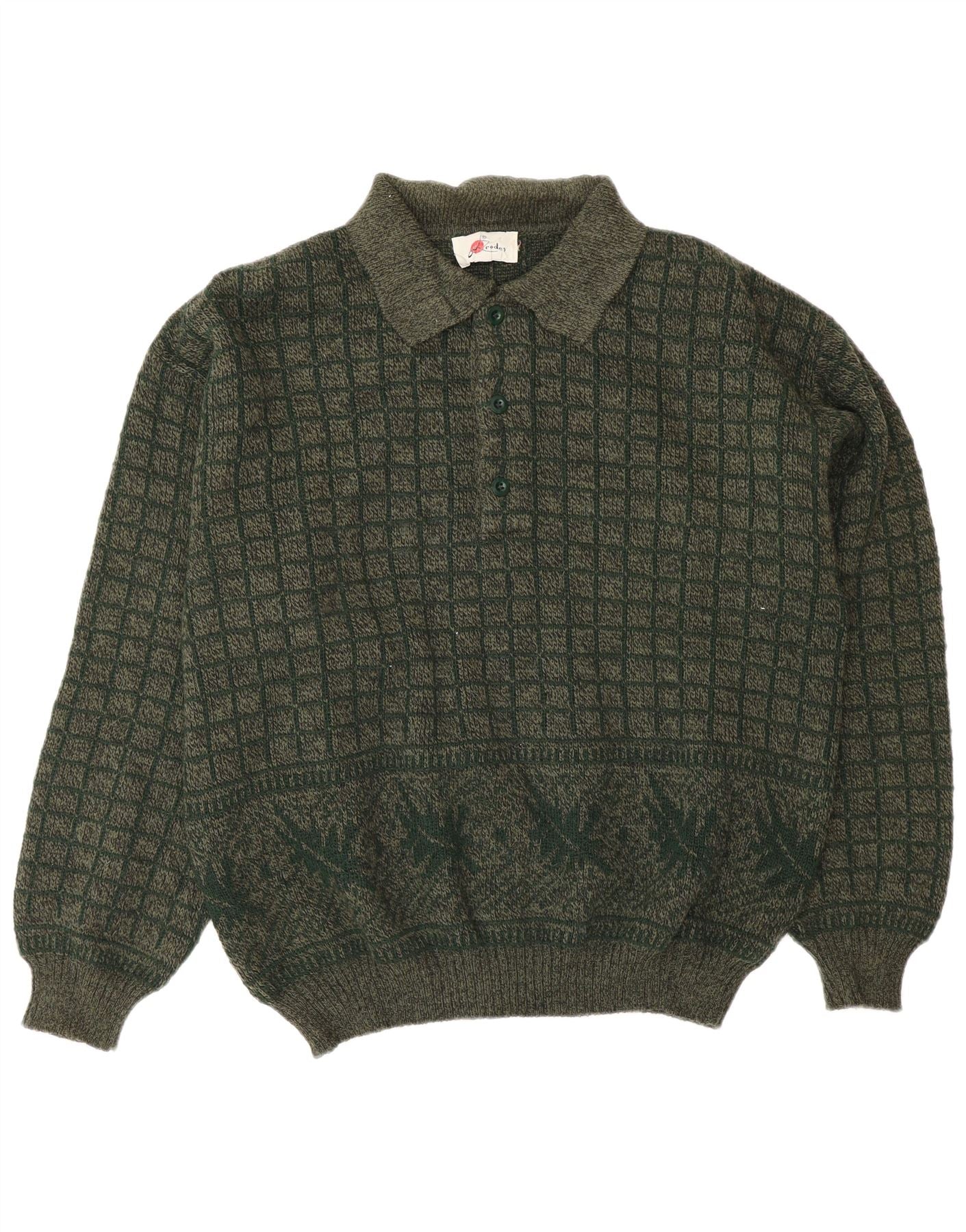 Vintage hombres polo cuello jersey suéter grande caqui geométrico acrílico