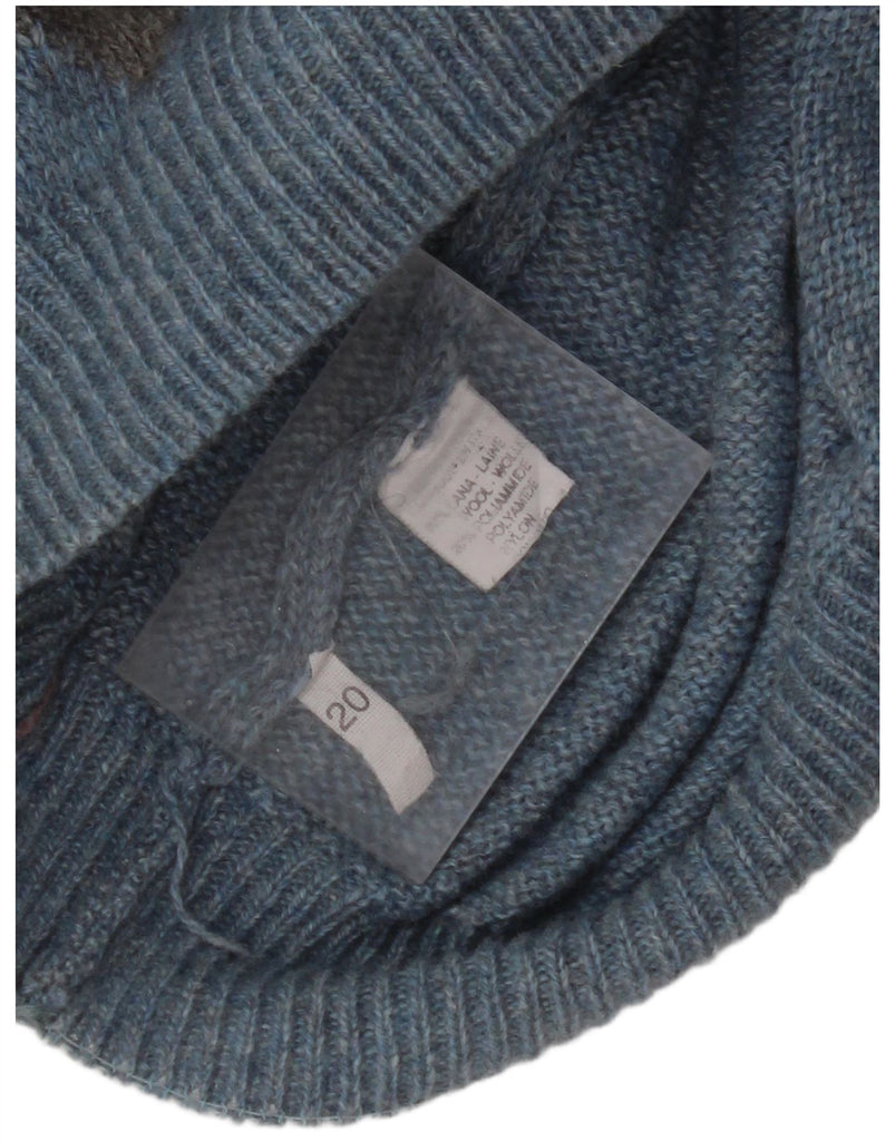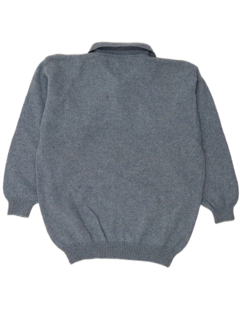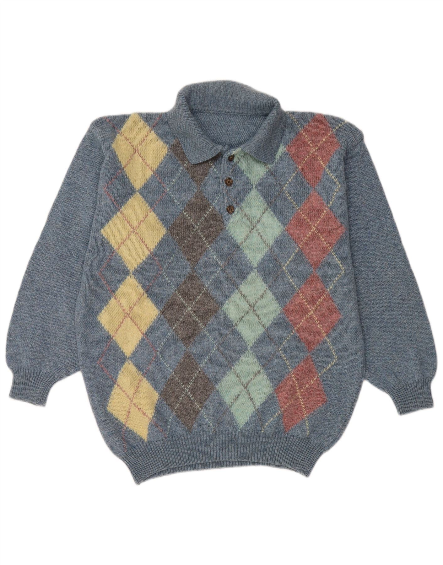 VINTAGE Hombre Polo Cuello Jersey Suéter Medio Azul Argyle/Lana Diamante