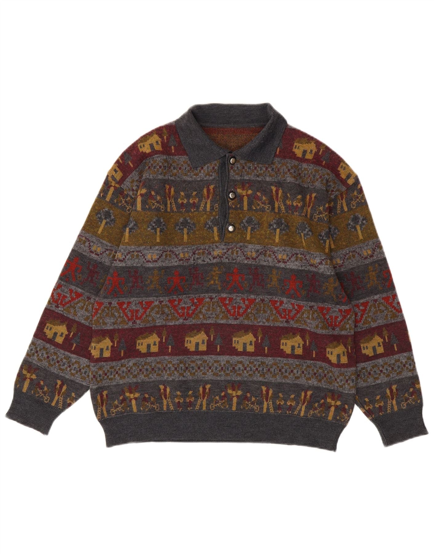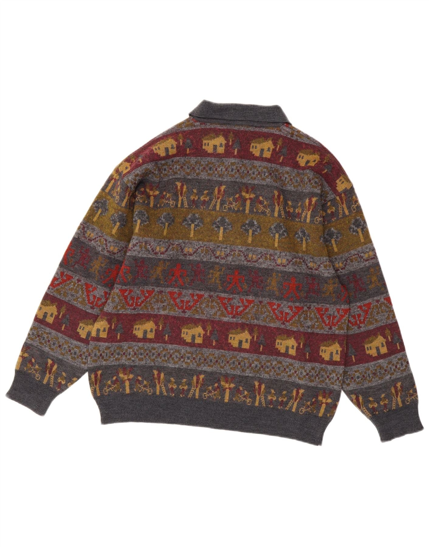VINTAGE Hombres Polo Cuello Jersey Suéter Medio Multicolor Fair Isle