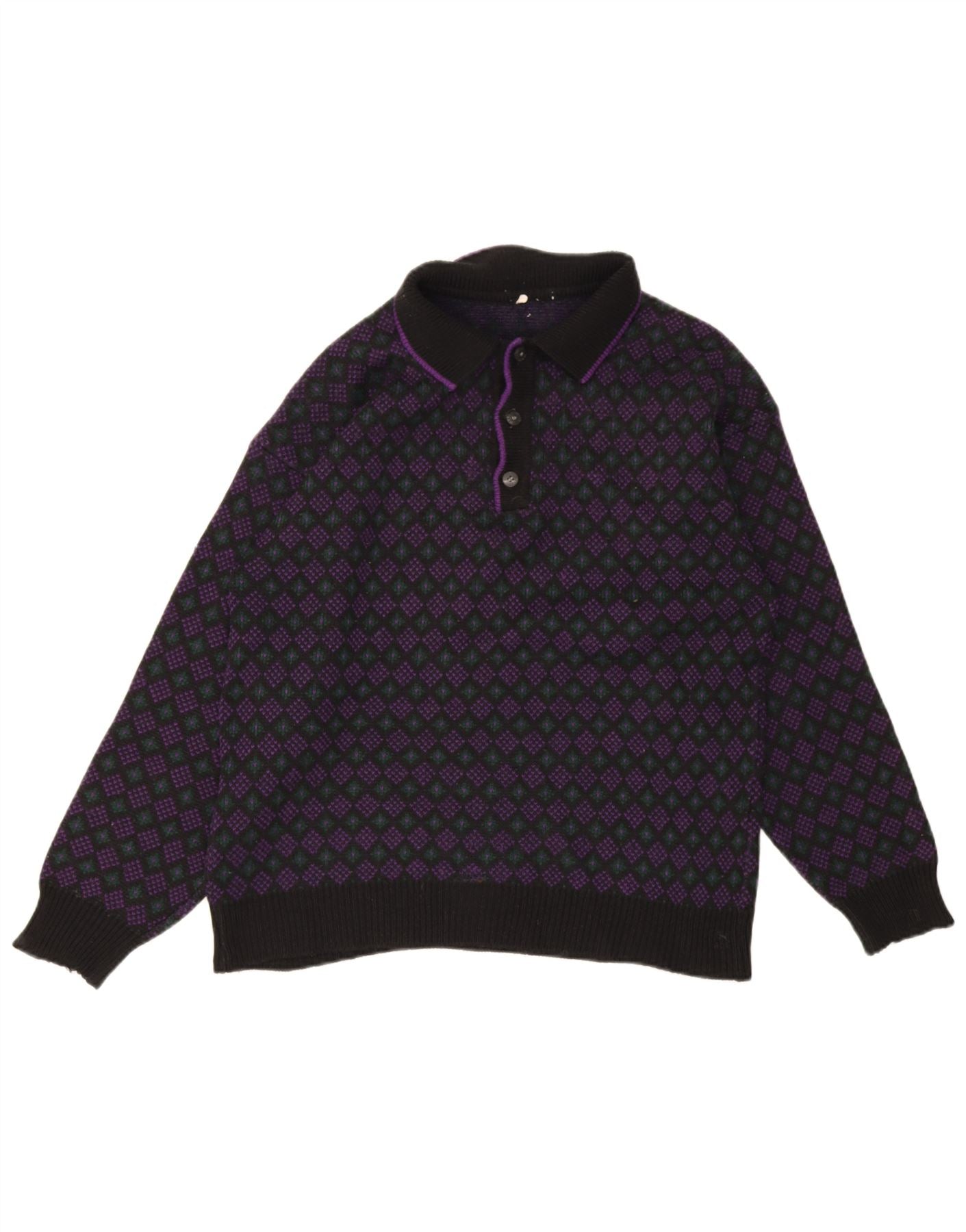- Descripción de IA: Este polo vintage para hombre presenta una base negra clásica con un llamativo patrón geométrico violeta en todas partes. Confeccionado con un cómodo tejido de punto, ofrece un ajuste estándar y mangas largas. El diseño incluye escote con cuello y tapeta con botones para un look elegante e informal. Perfecto para añadir un toque retro a tu armario.