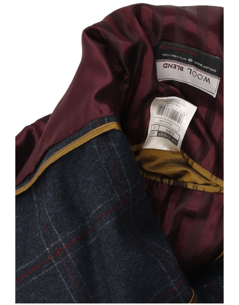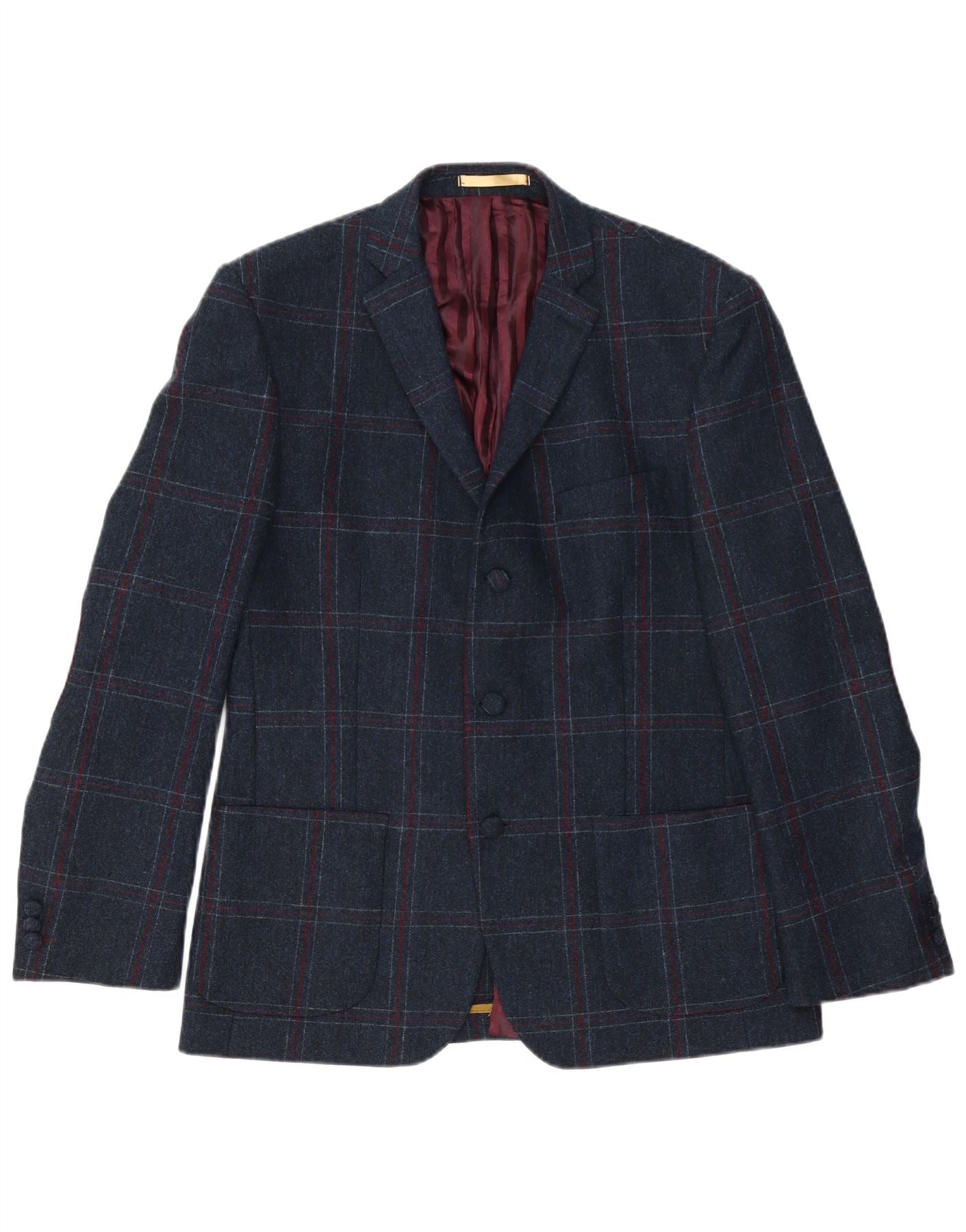 VINTAGE Hombres Regular Fit 3 Botones Blazer Chaqueta Reino Unido 42 XL Azul Marino Check