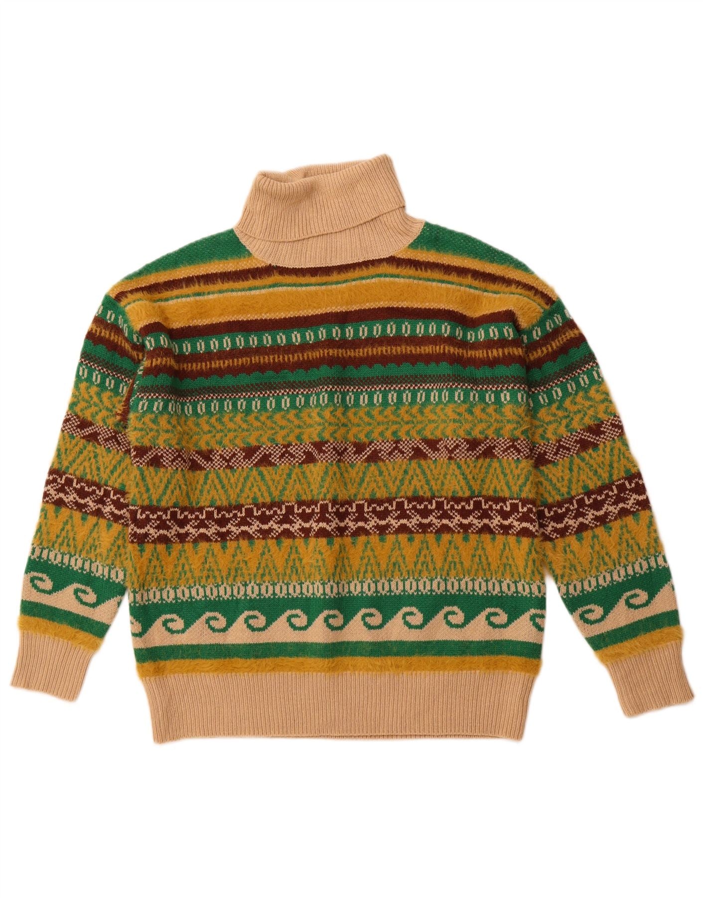VINTAGE Hombres Roll Neck Jumper Suéter Grande Multicolor Fair Isle