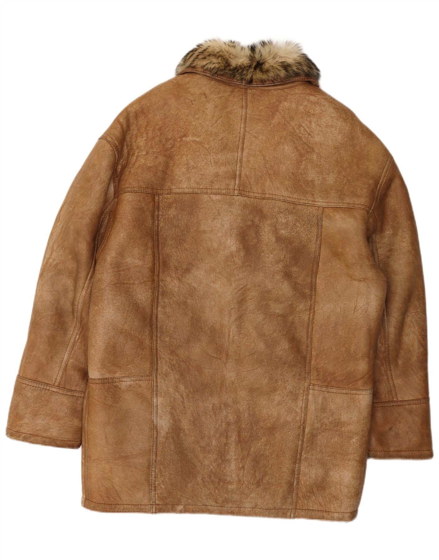 VINTAGE Chaqueta de piel de oveja para hombre Reino Unido 36 Pequeña piel de oveja marrón