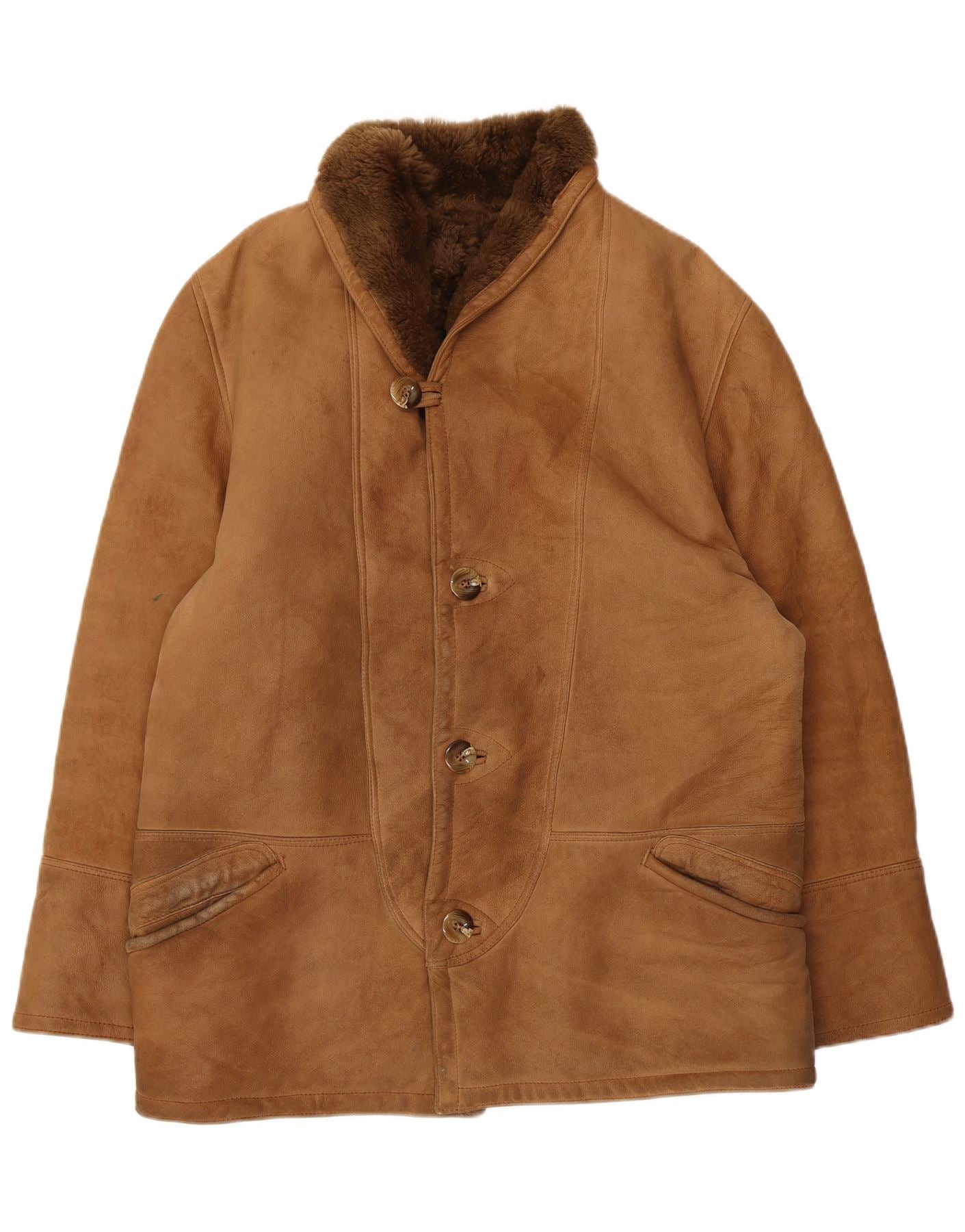 VINTAGE Chaqueta de piel de oveja para hombre Reino Unido 40 Gran piel de oveja marrón