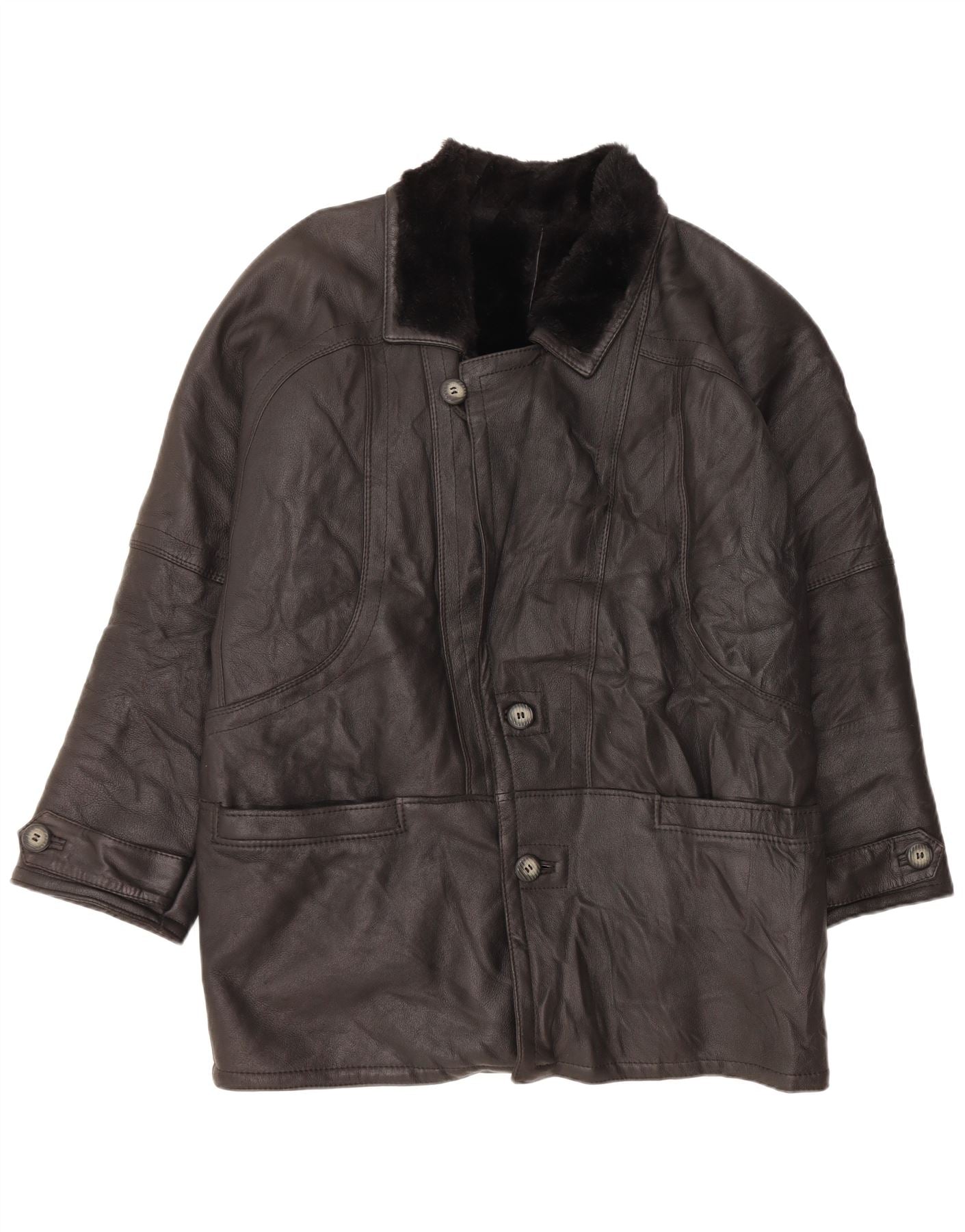 VINTAGE Abrigo de piel de oveja para hombre IT 52 XL Piel de oveja negra