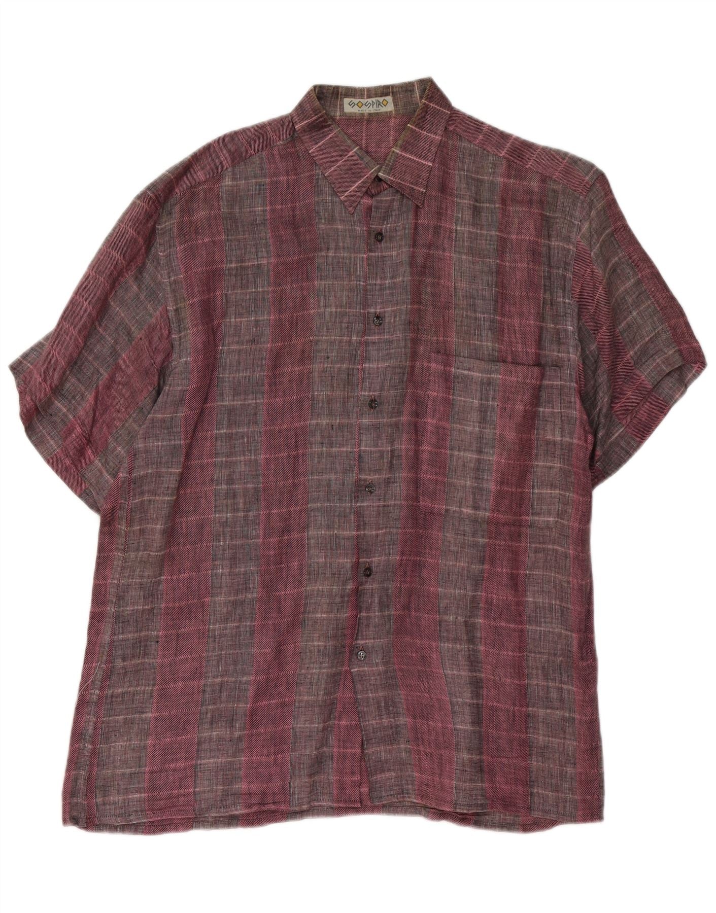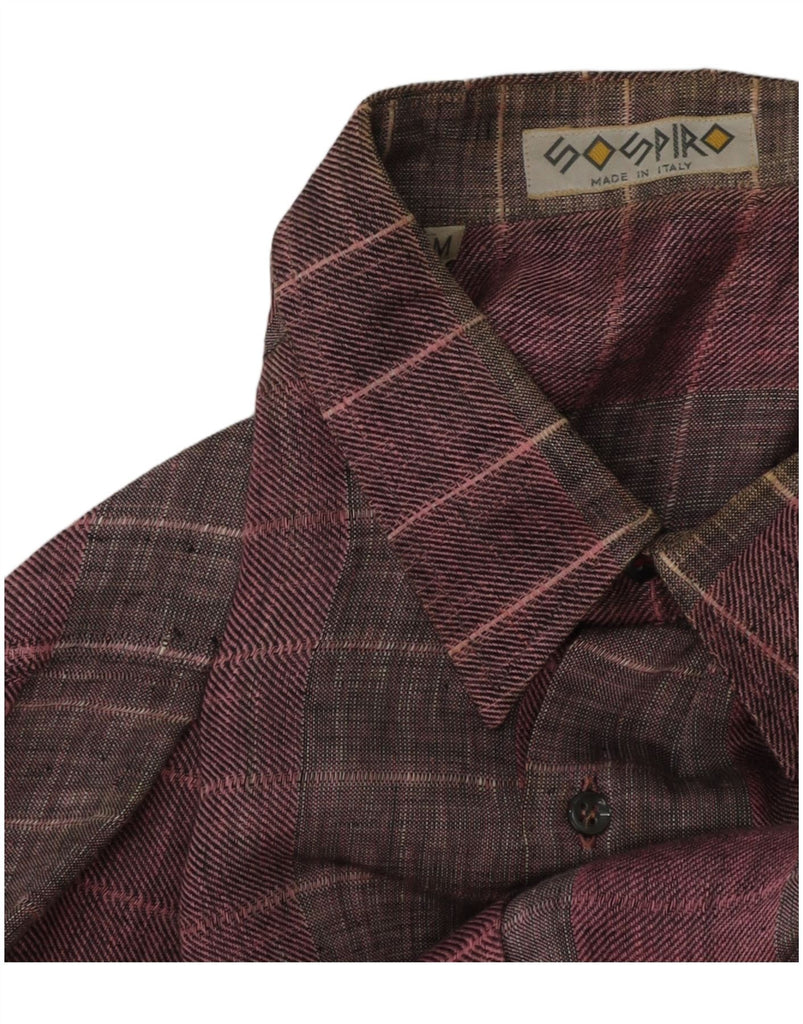 VINTAGE Camisa de franela de manga corta para hombre Cuadros morados medianos
