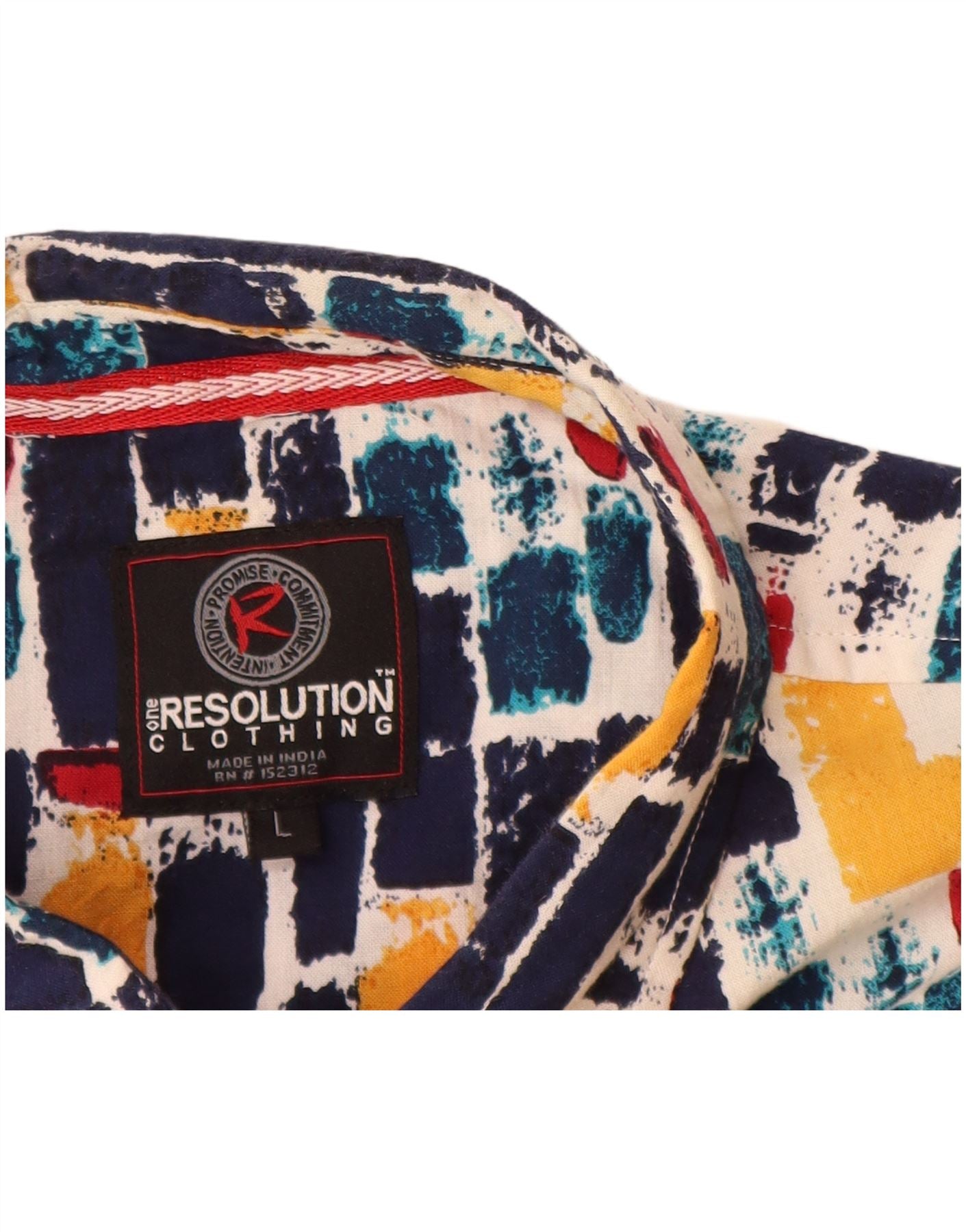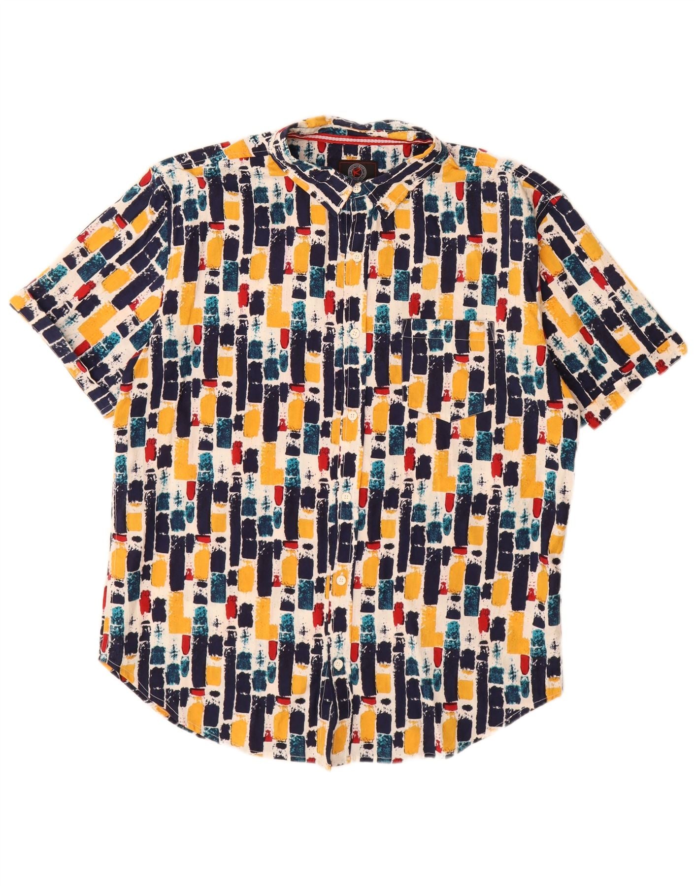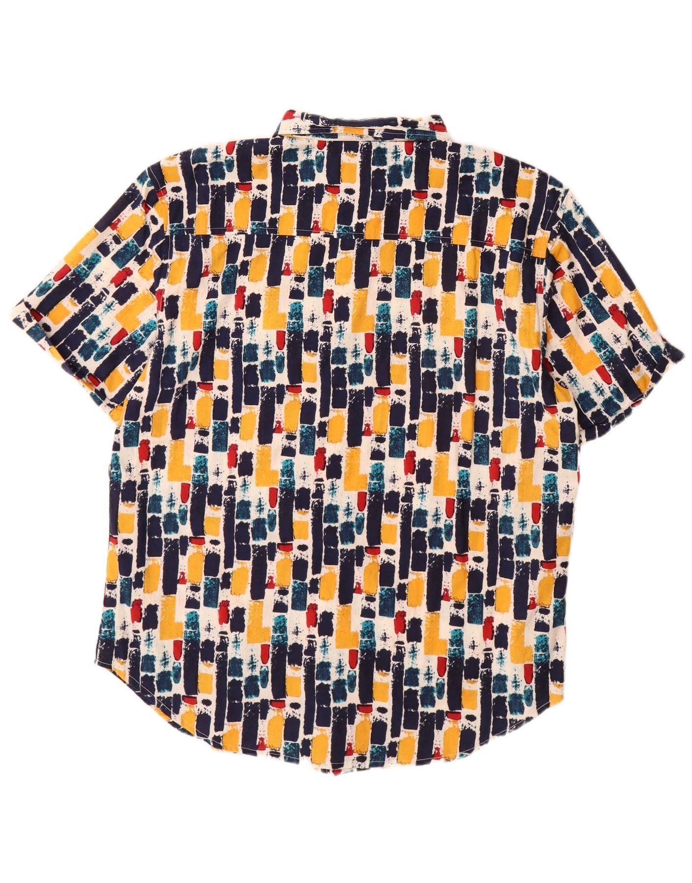 VINTAGE Camisa de manga corta para hombre Algodón geométrico multicolor grande