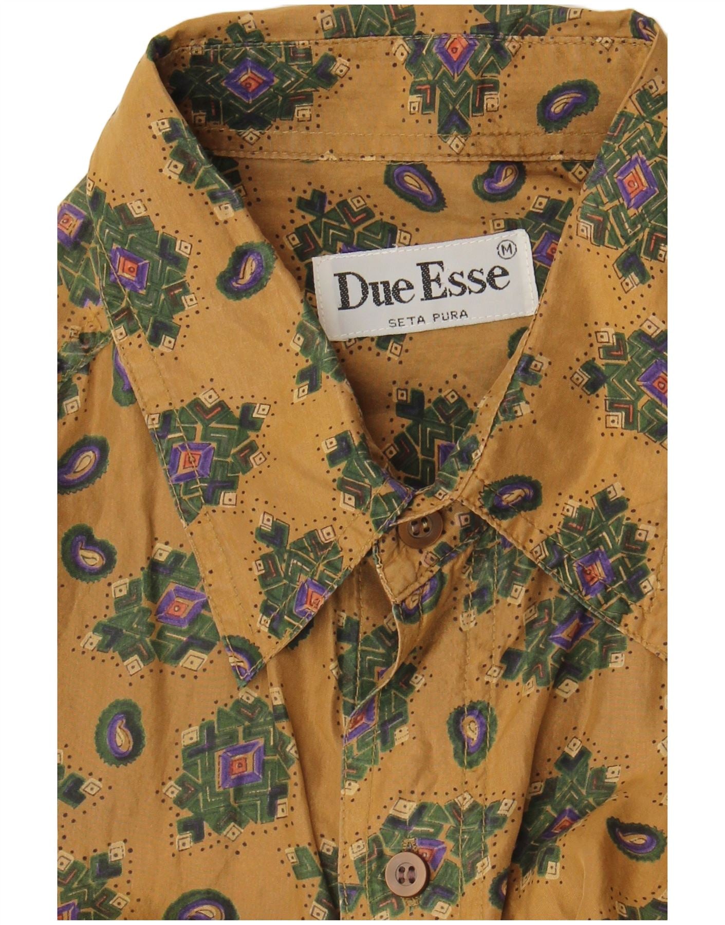 - Descripción de IA: Esta camisa para hombre Due Esse está confeccionada con lujosa seda pura con un suave acabado satinado. Presenta una rica base marrón adornada con un intrincado patrón abstracto y paisley. El escote con cuello y las mangas cortas ofrecen una silueta clásica y relajada. Un frente con botones garantiza un uso fácil. Su corte holgado proporciona comodidad y un estilo relajado. Esta pieza de inspiración retro es perfecta para un look informal refinado.
