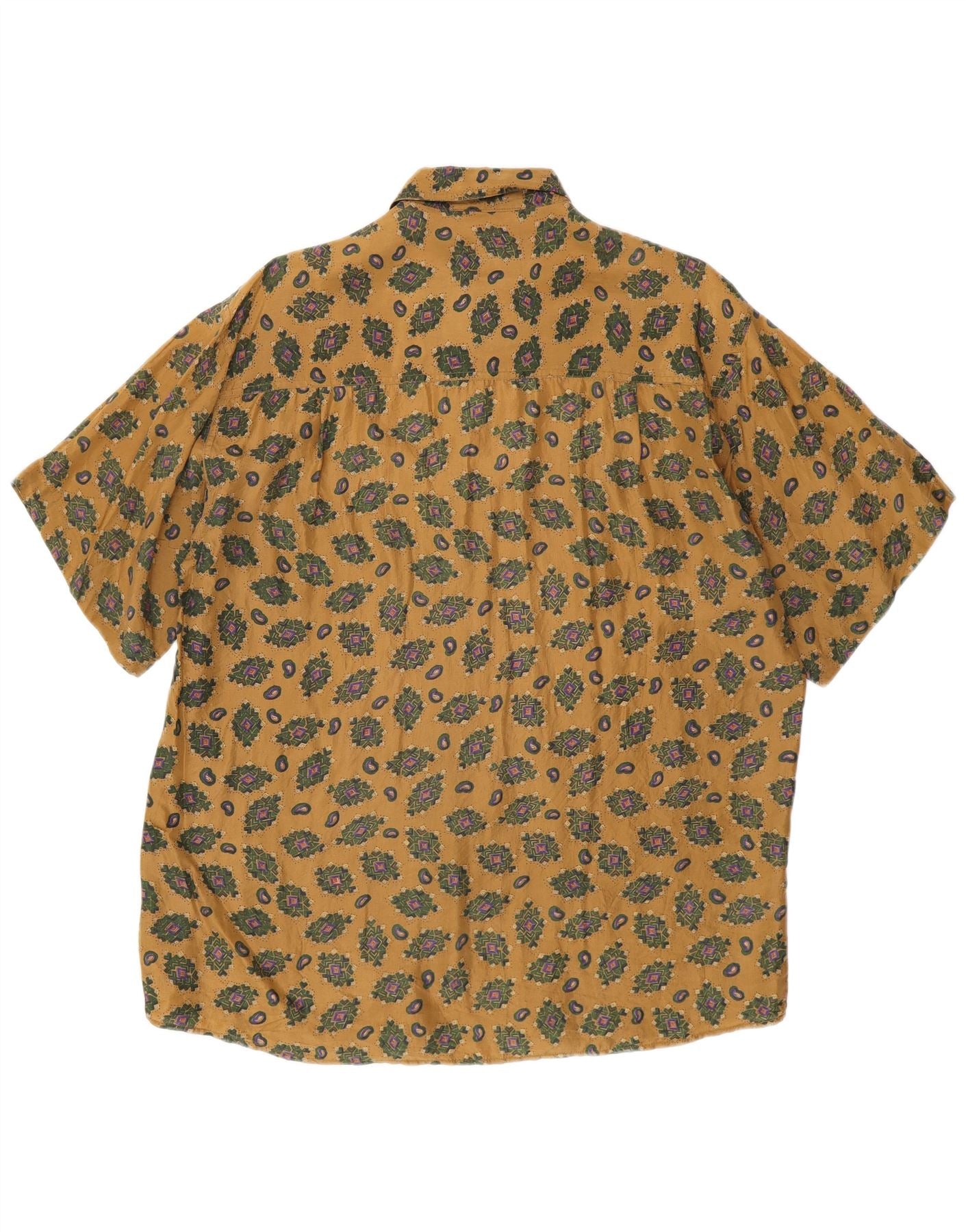 Vintage hombres camisa de manga corta seda geométrica beige medio