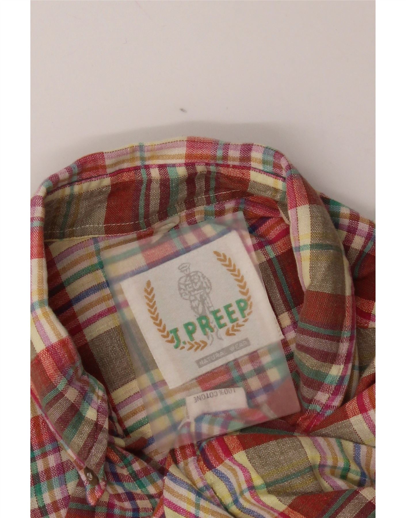 Camisa vintage de manga corta para hombre de algodón a cuadros multicolor medio