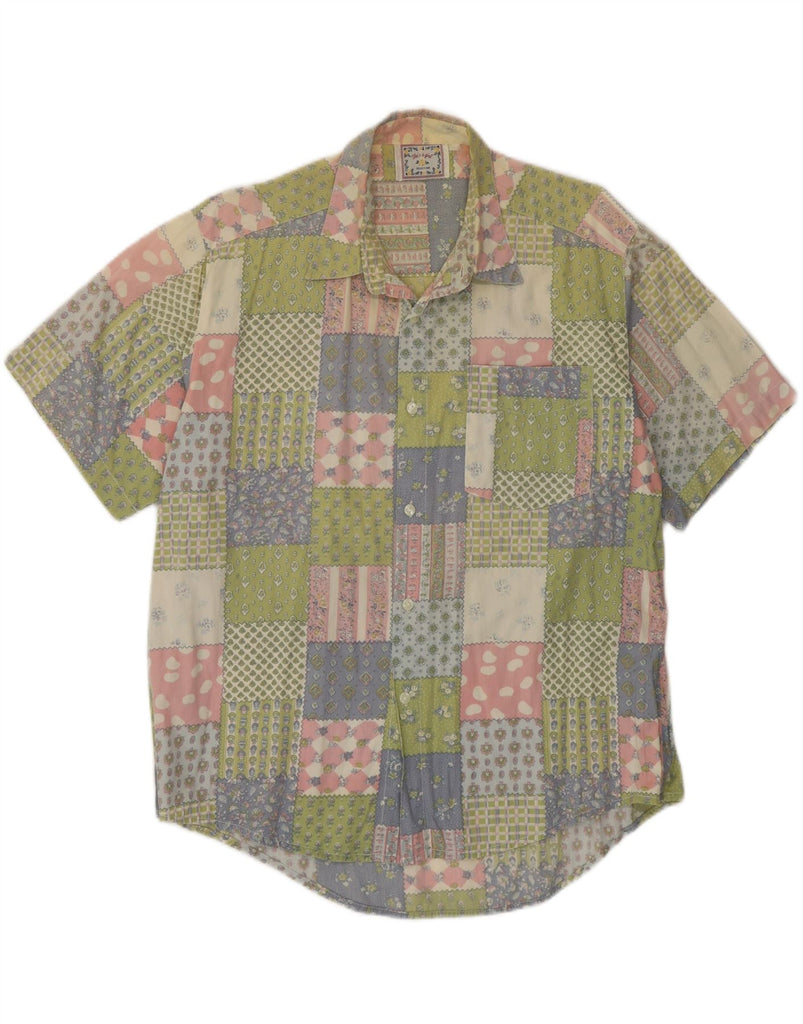 VINTAGE Camisa de manga corta para hombre Algodón patchwork multicolor medio