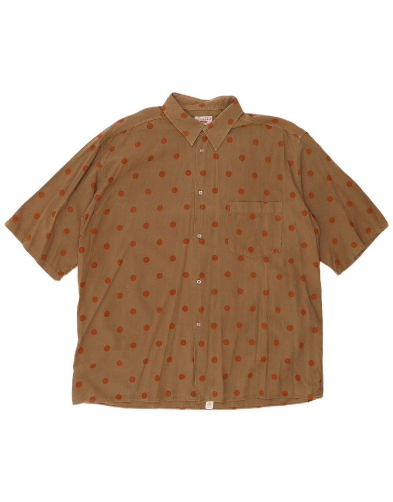 VINTAGE Camisa de manga corta para hombre XL Algodón manchado marrón