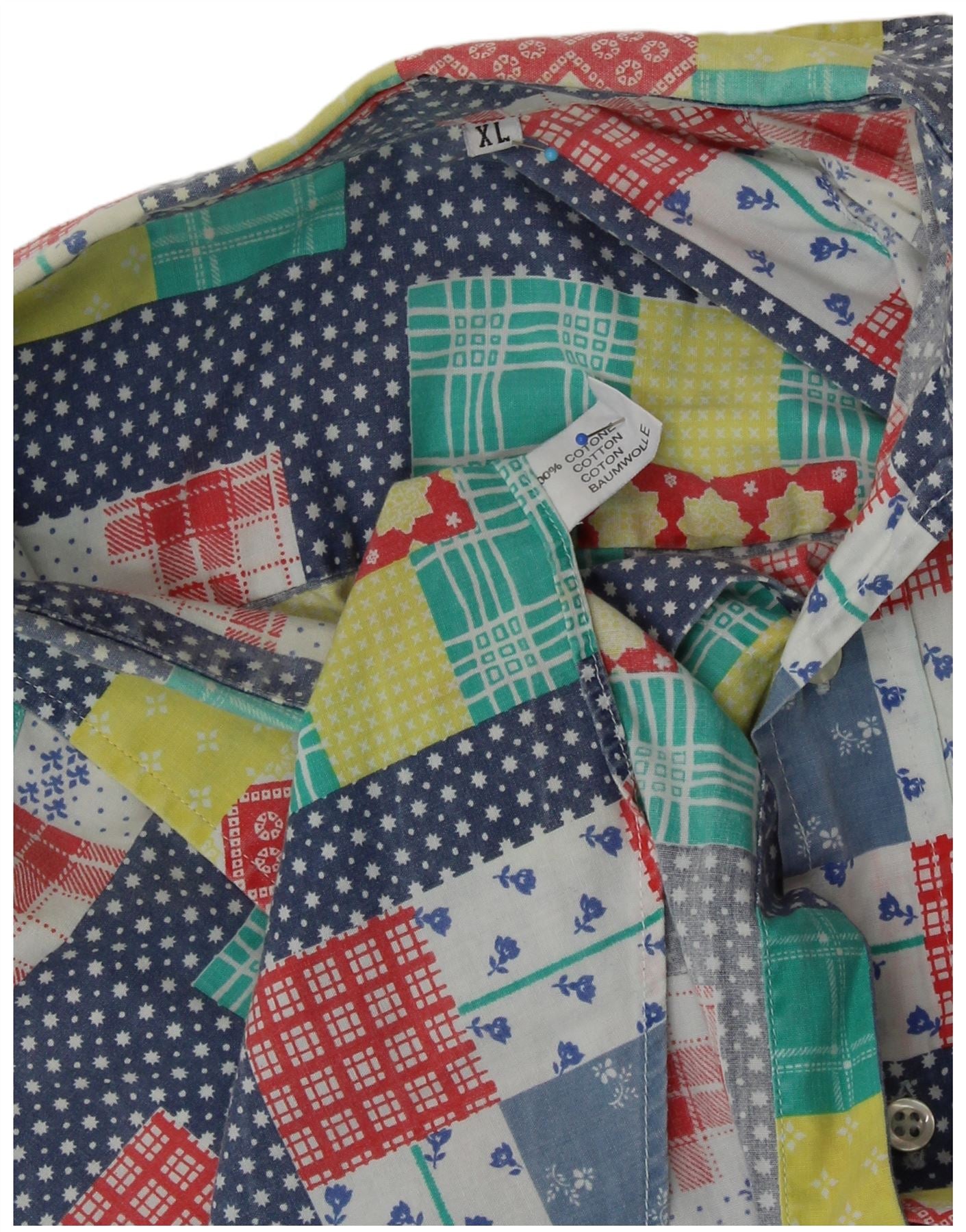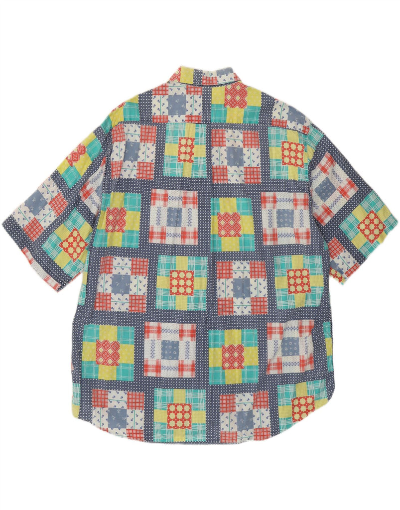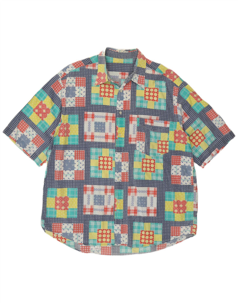 VINTAGE Camisa de manga corta para hombre XL Algodón patchwork multicolor